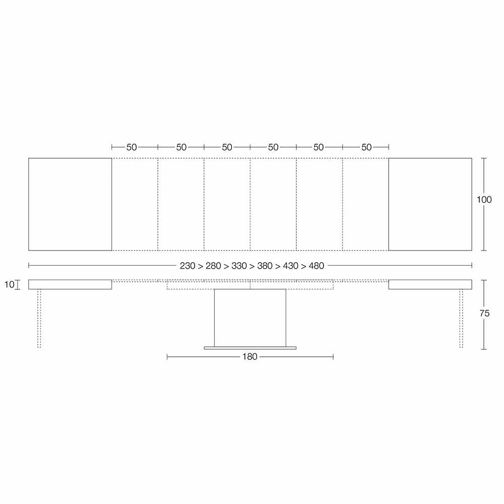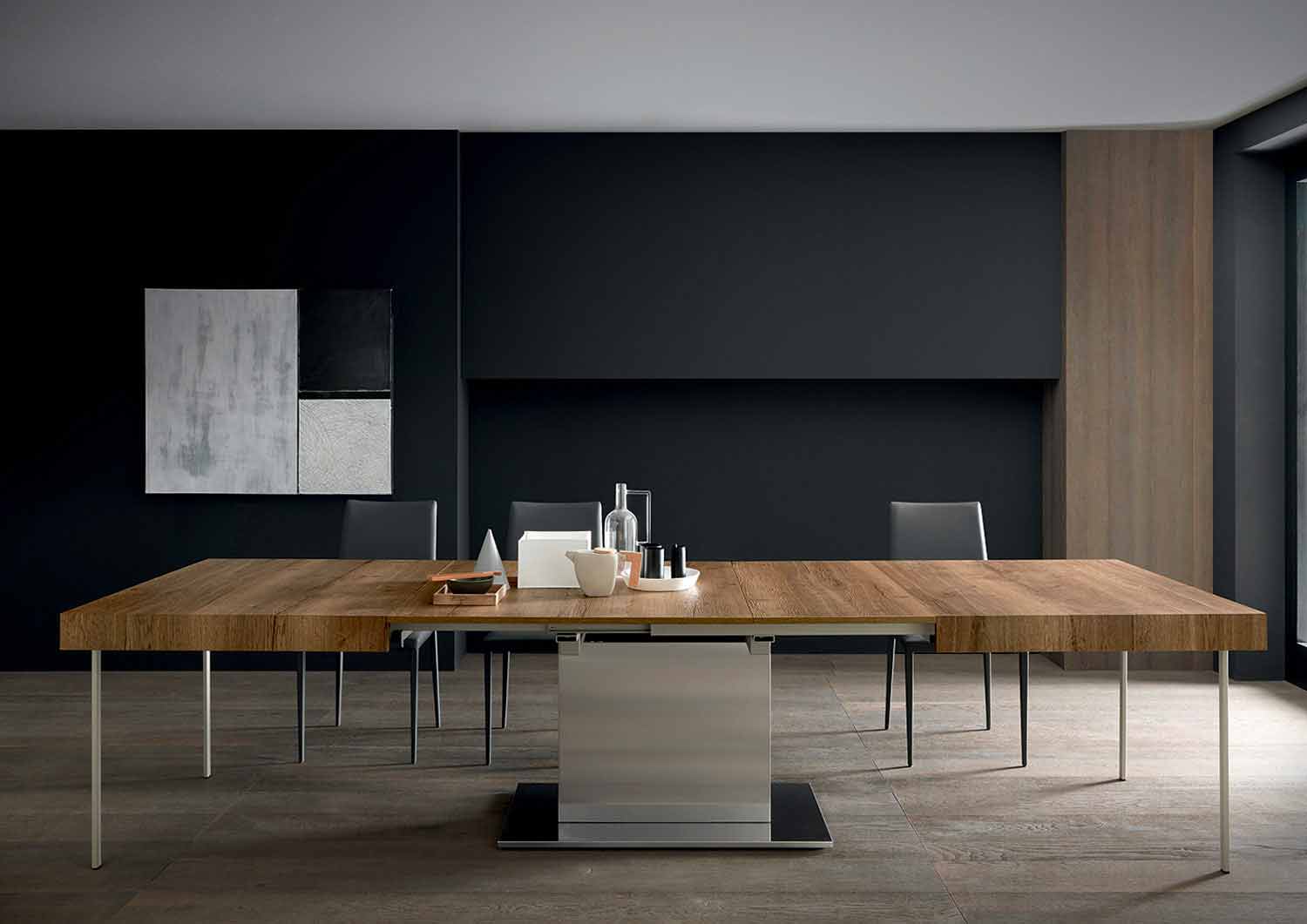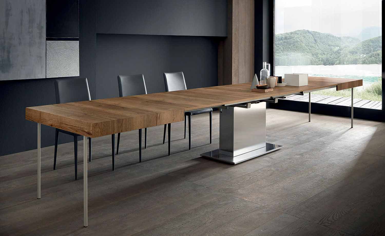 Mesa de jantar extensível com tampo em madeira melamínica e base em metal Made in Italy.