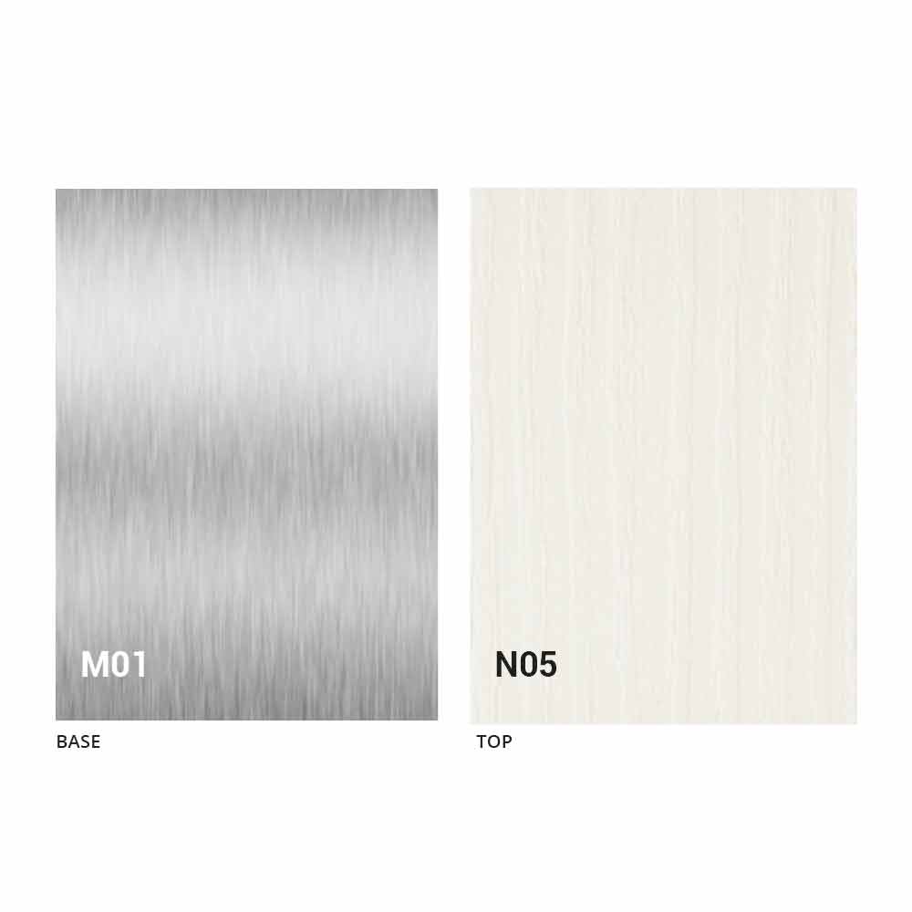 Disponível em diferentes acabamentos:- tampo em madeira de melamina branca matrix,