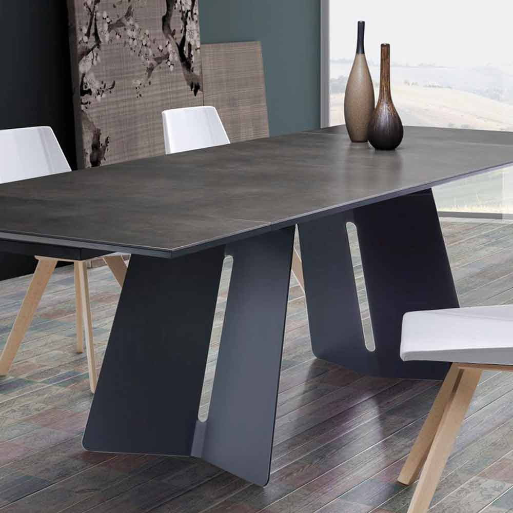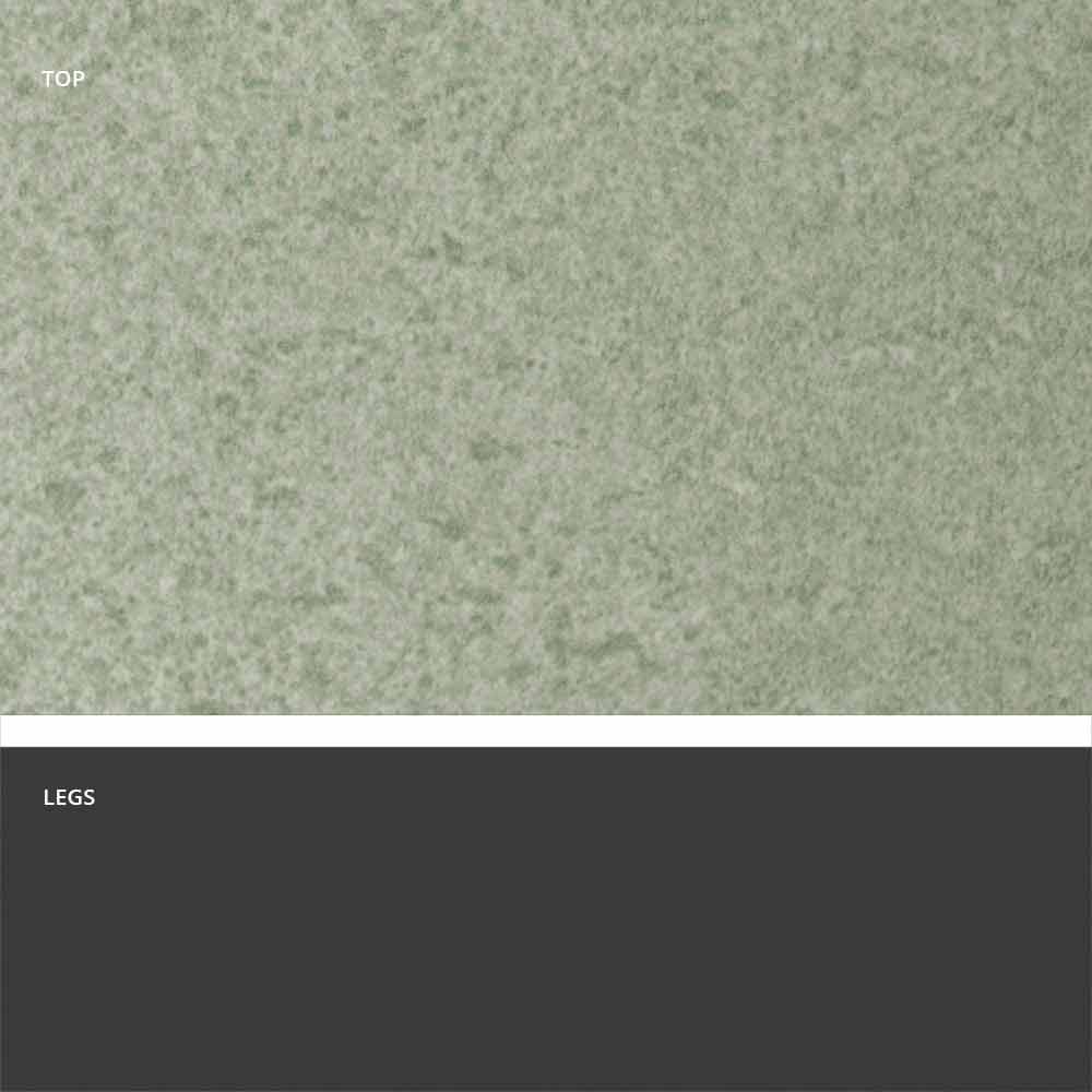 - base em metal cinzento preto (RAL 7021) e tampo de grés em acabamento de fumo.