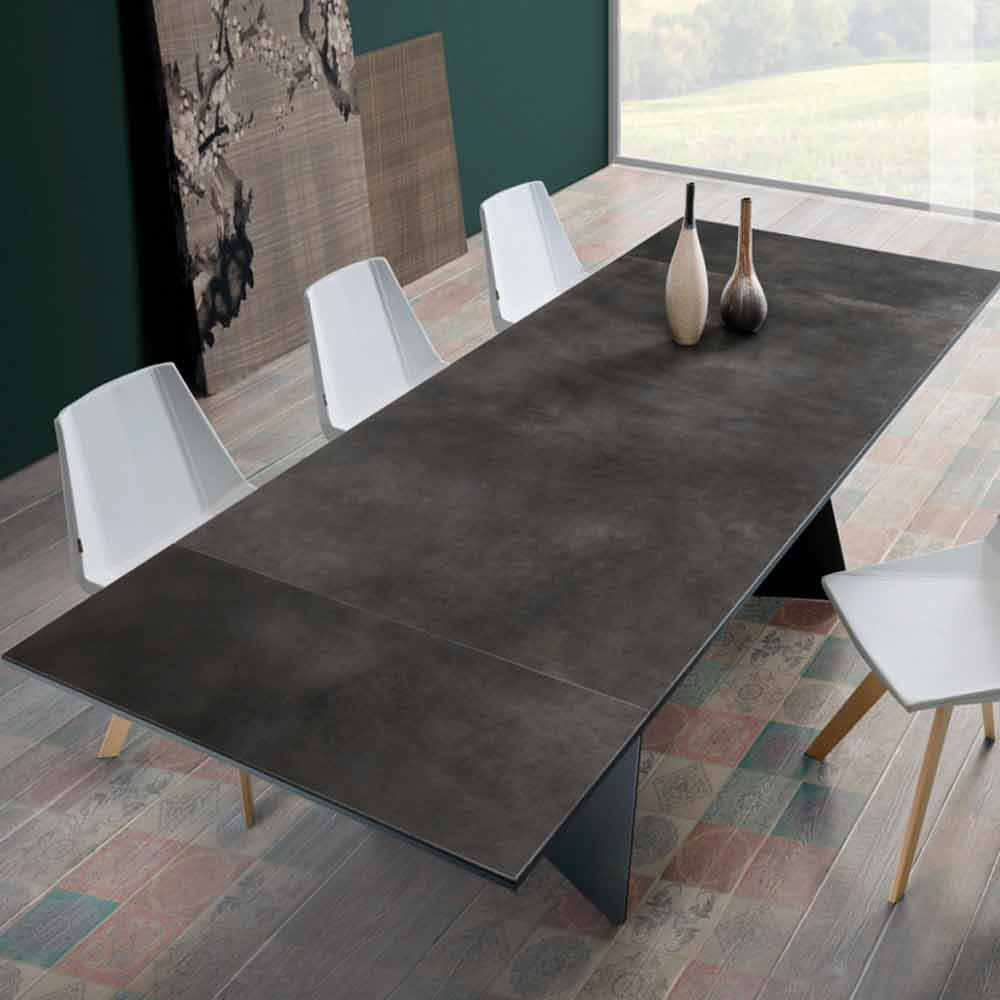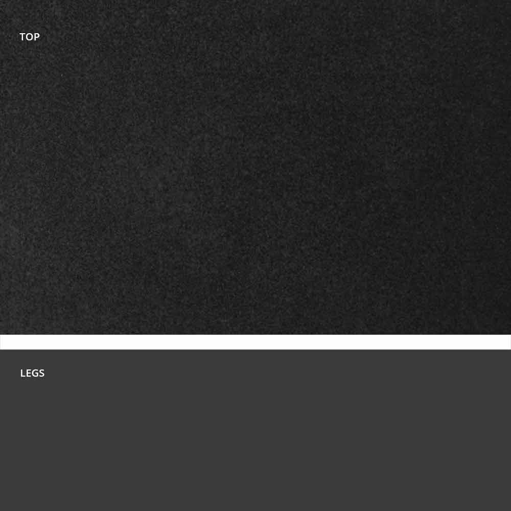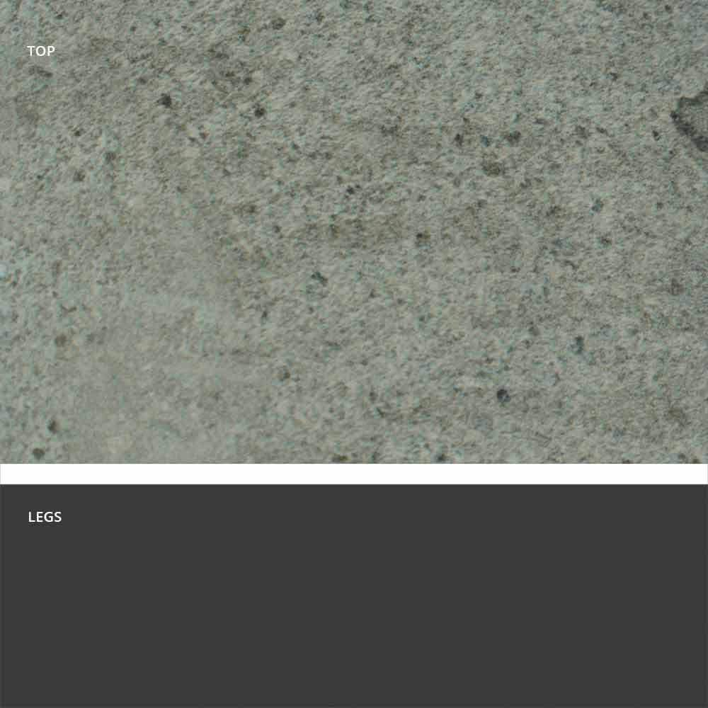 - base em metal cinza preto (RAL 7021) e tampo de grés em acabamento de resina de ébano;
