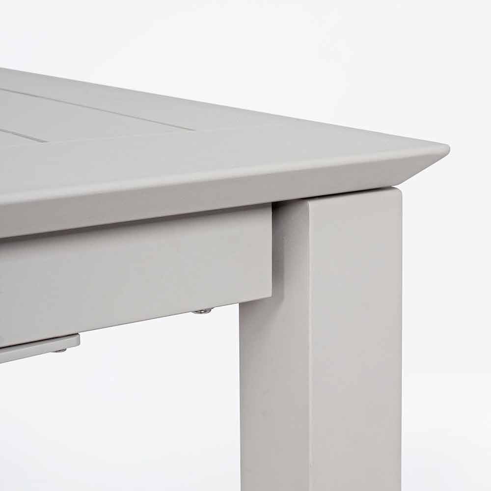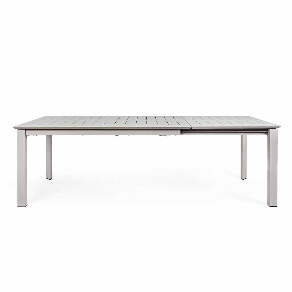 Mesa extensível para 10 pessoas, design moderno em alumínio.