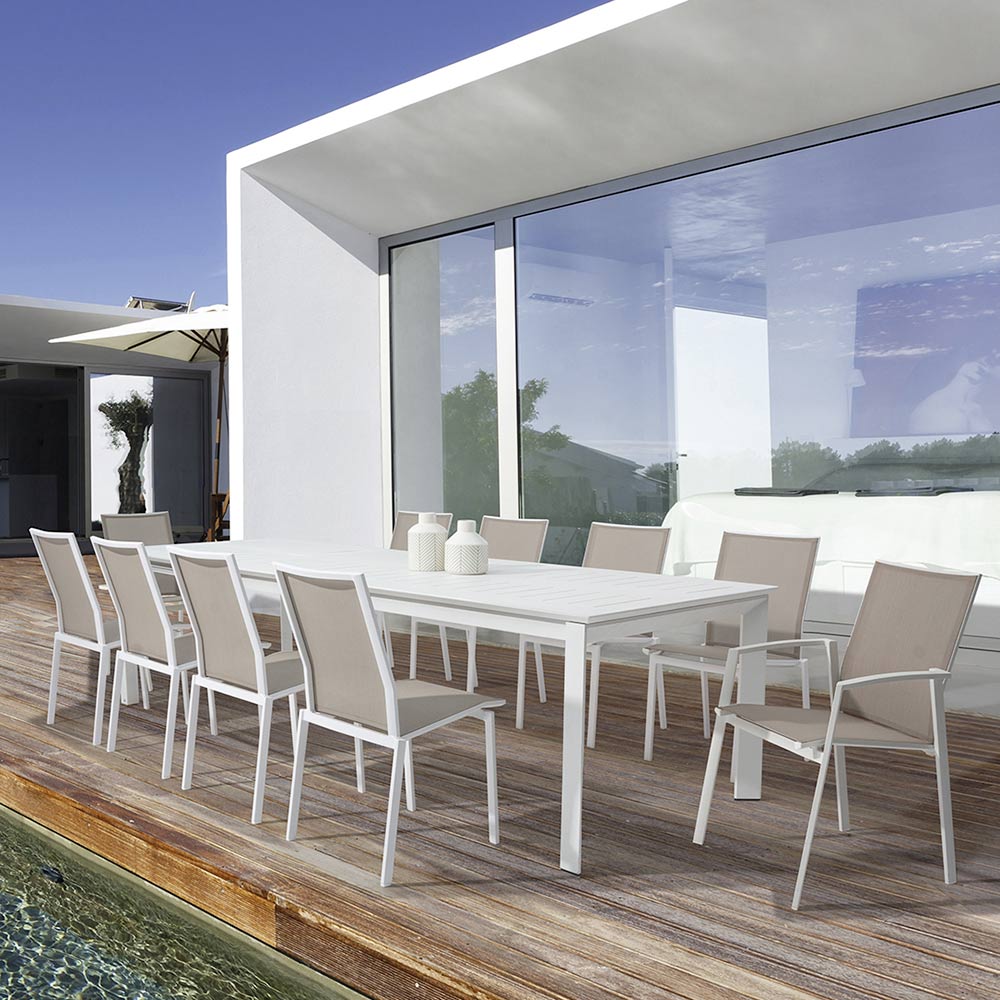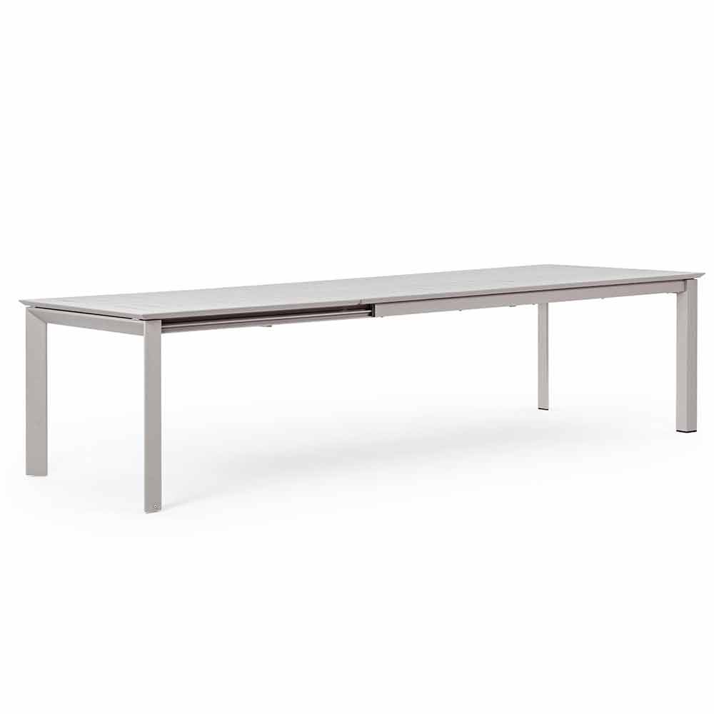 Mesa externa extensível para 10 pessoas, design moderno, em rastina, antracite ou alumínio branco.