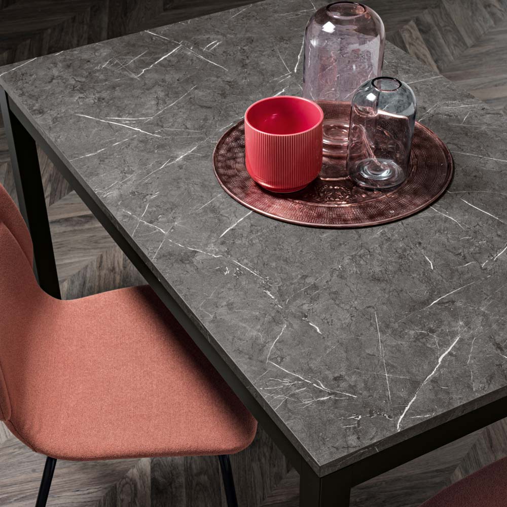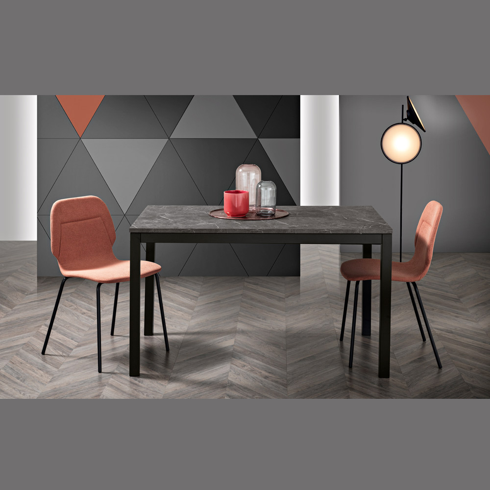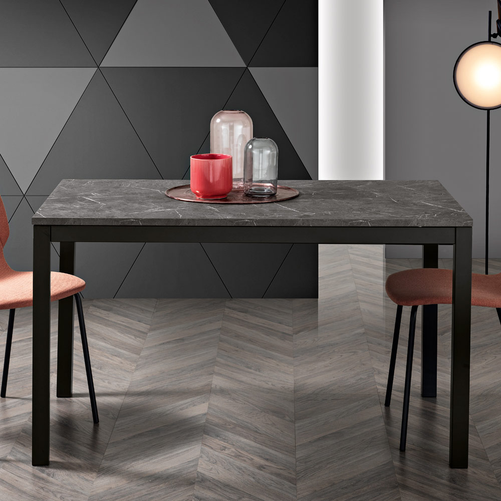 Fabricado em Itália. Descubra o charme contemporâneo e a sofisticação atemporal desta mesa de jantar . Uma majestosa superfície melamínica suportada por uma estrutura robusta com elegantes pernas metálicas . Transforme cada refeição em uma ocasião especial.