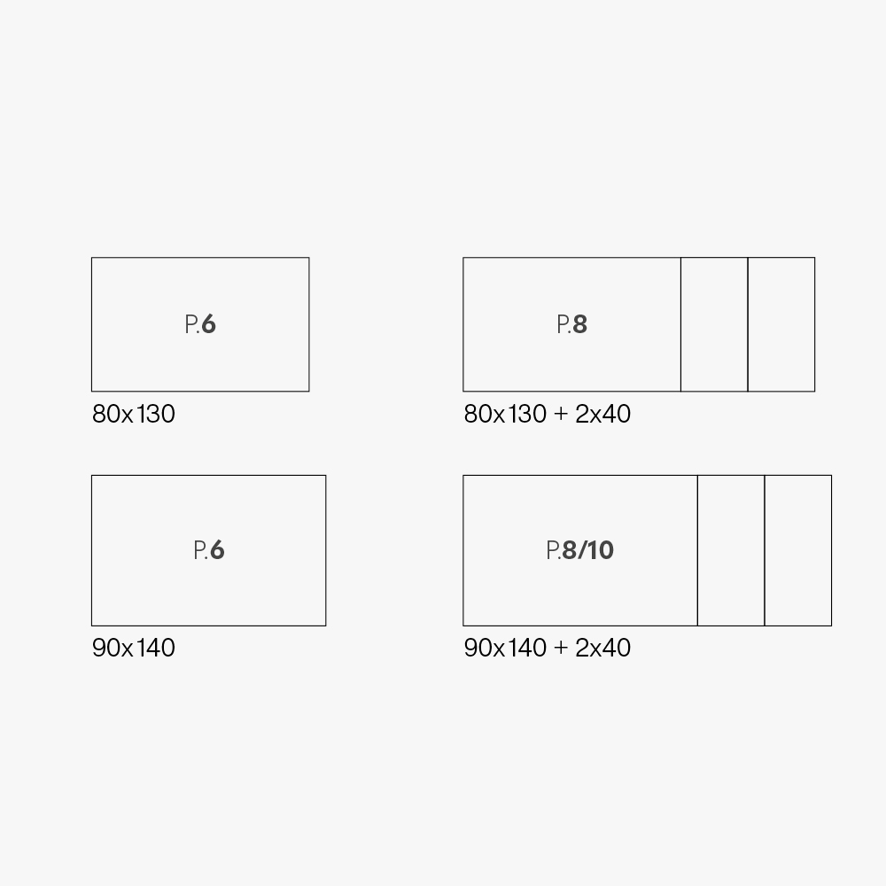 Tamanhos disponíveis:- comprimento 130/210 cm x profundidade 80 cm x altura 75,5 cm - 2 extensões de 40 cm