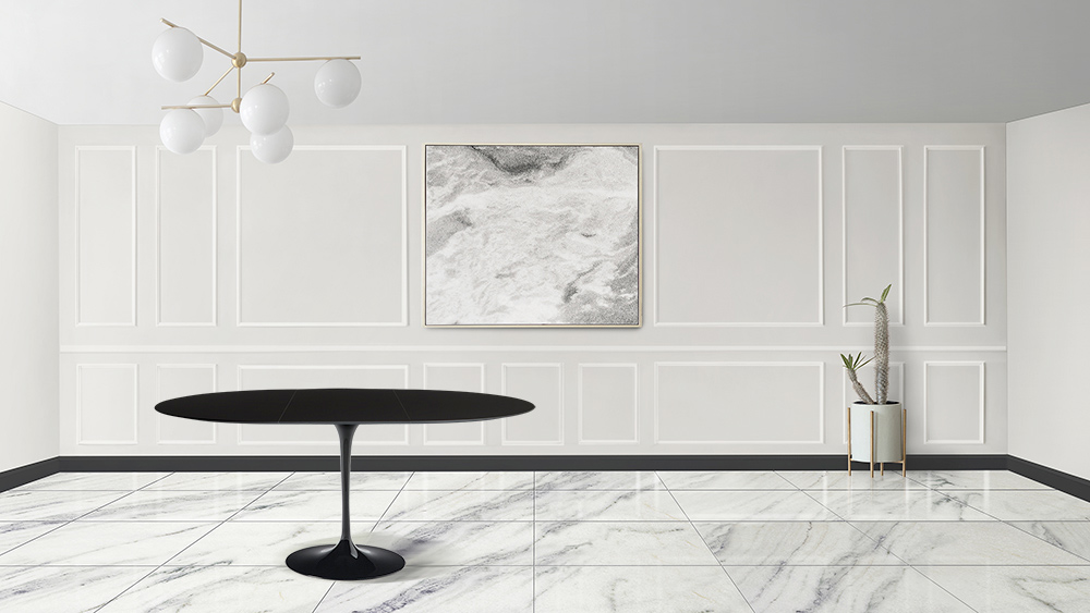 Mesa de jantar extensível até 187 cm com tampo em laminado líquido preto e base em alumínio polido preto inteiramente Made in Italy . Esta peça de mobiliário responde às necessidades de funcionalidade e adaptabilidade de qualquer ambiente de sala e cozinha. Refinado e de linhas simples, pode ser inserido em todos os móveis para melhor completar cada divisão. A possibilidade de ser prolongada torna-a um elemento único que responde à necessidade de ter mais comensais, graças também à forma da base que favorece a inserção de muitas cadeiras. Esta mesa é a ideia perfeita para ter algo original e elegante mas ao mesmo tempo útil para todas as ocasiões e eventos.