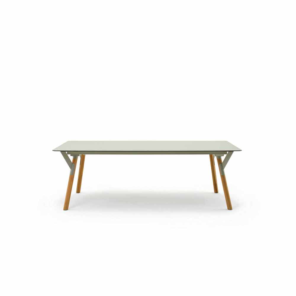 A mesa de jardim Link tem um quadro de aço inoxidável pintado e pernas de madeira de teca. A parte superior está disponível em HPL (12 mm de espessura) ou em madeira de teca (30 mm de espessura). Graças ao seu design versátil, você pode usar esta mesa extensível tanto no jardim, no pátio ou no interior. Uma vez que tem 65 cm de altura, a mesa Link pode ser usada com sofás ou poltronas Você pode personalizar a mesa Link escolhendo entre as dimensões e acabamentos disponíveis.