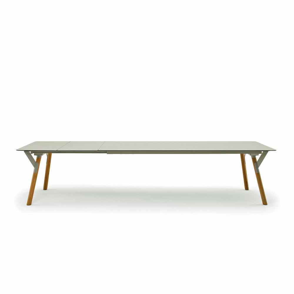 Varaschin Link mesa exterior extensível com pés de madeira de teca, H 65 cm