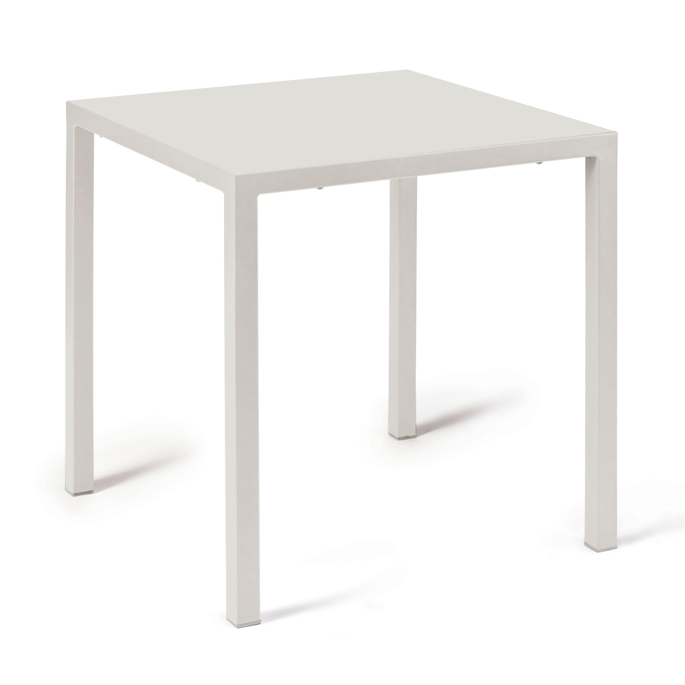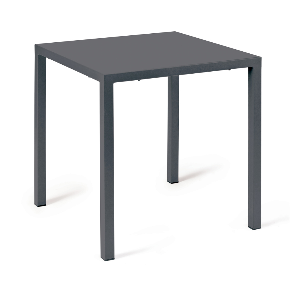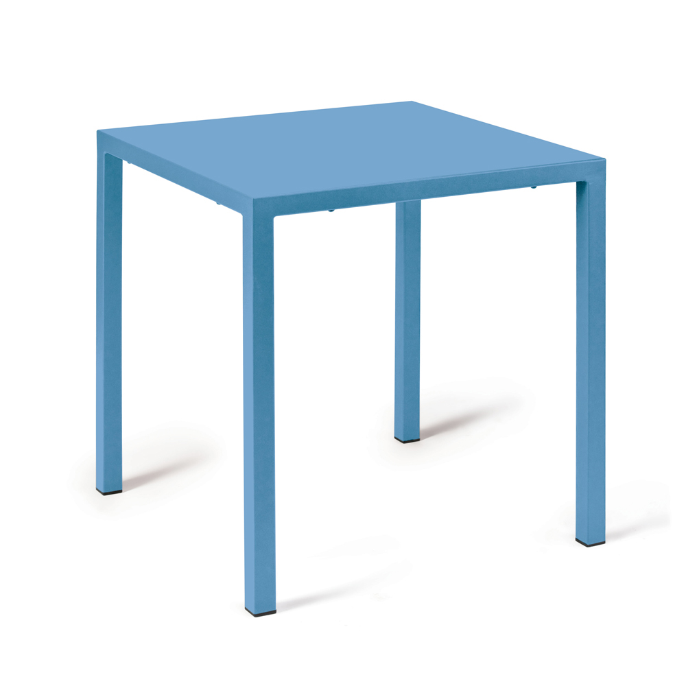 Mesa de jantar para área externa empilhável e autonivelante , fabricada na Itália, inteiramente em aço galvanizado, com pernas quadradas e 4 pés regulares.