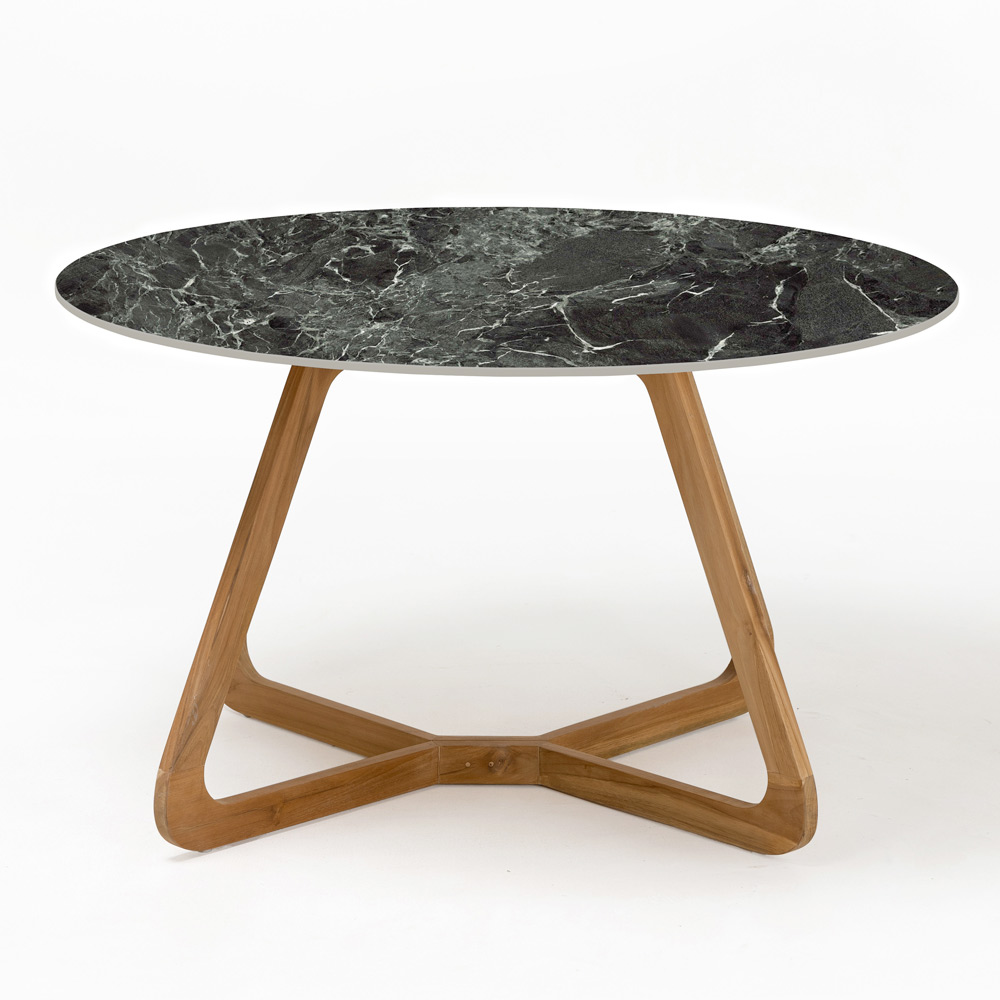 Mesa de jardim redonda de madeira e cerâmica, fabricada na Itália