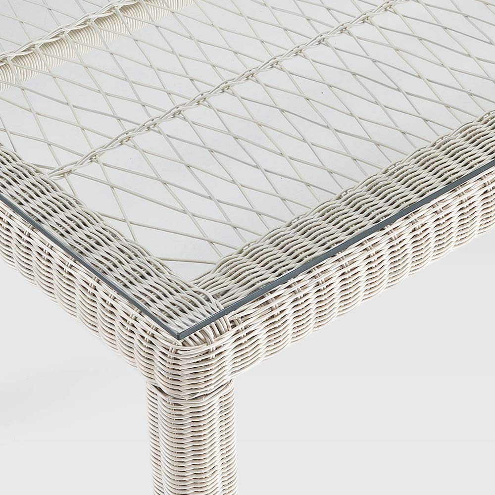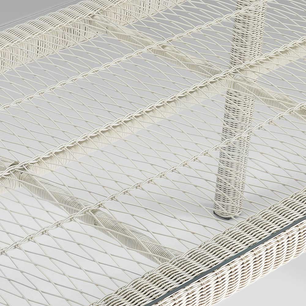 O estilo de tecelagem é refinado e delicado e, juntamente com a altíssima qualidade dos materiais e as suas formas decisivas, tornam esta mesa perfeita para mobiliário de interior e exterior, tanto para ambientes privados como para ambientes contratuais, como terraços, varandas, jardins, mas também encontram uma localização perfeita junto à piscina.