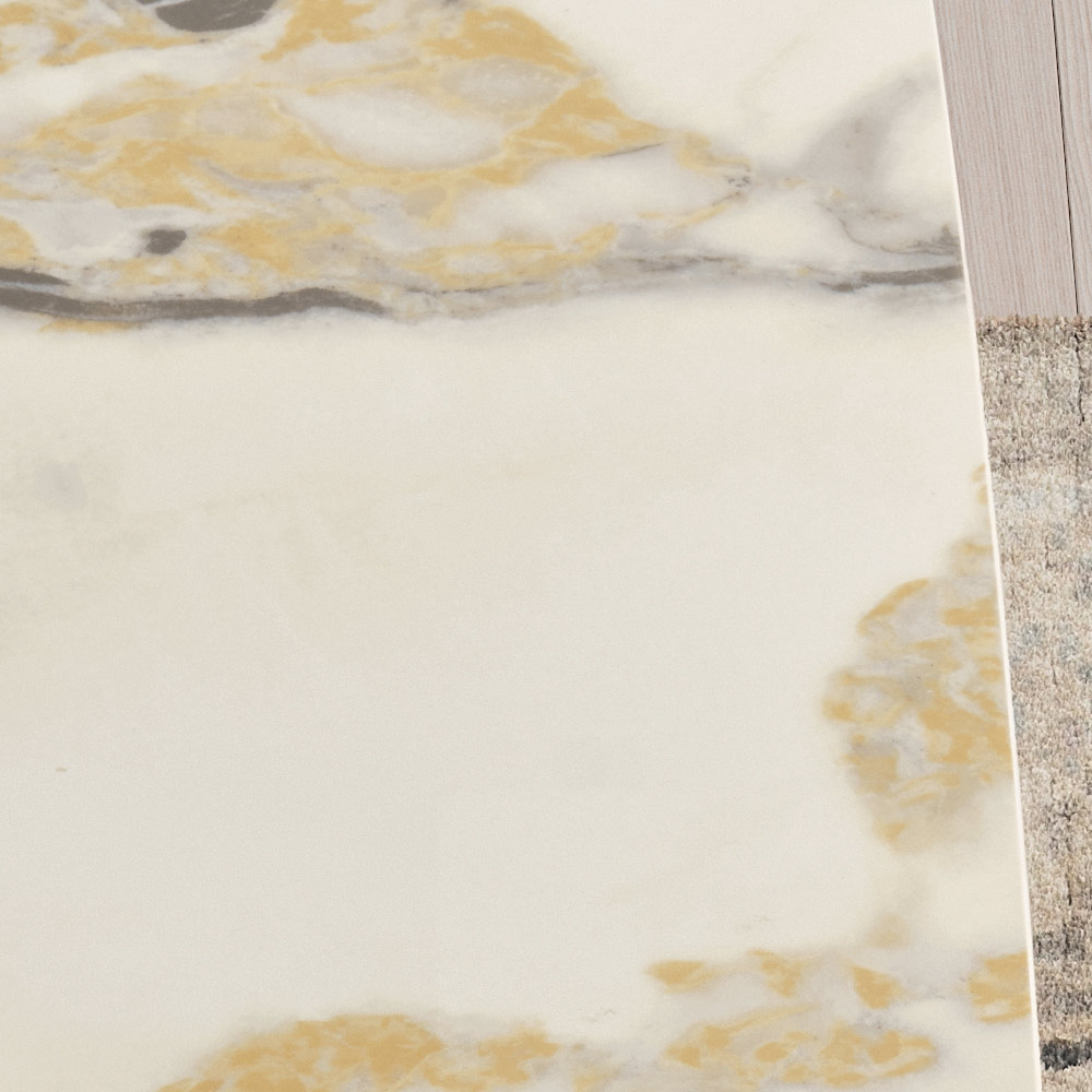 A bancada de cerâmica com efeito mármore oferece uma superfície elegante e altamente durável, perfeita para o uso diário. A cerâmica reproduz de forma realista os veios naturais do mármore, garantindo também um material durável, fácil de limpar e resistente a riscos, calor e manchas.