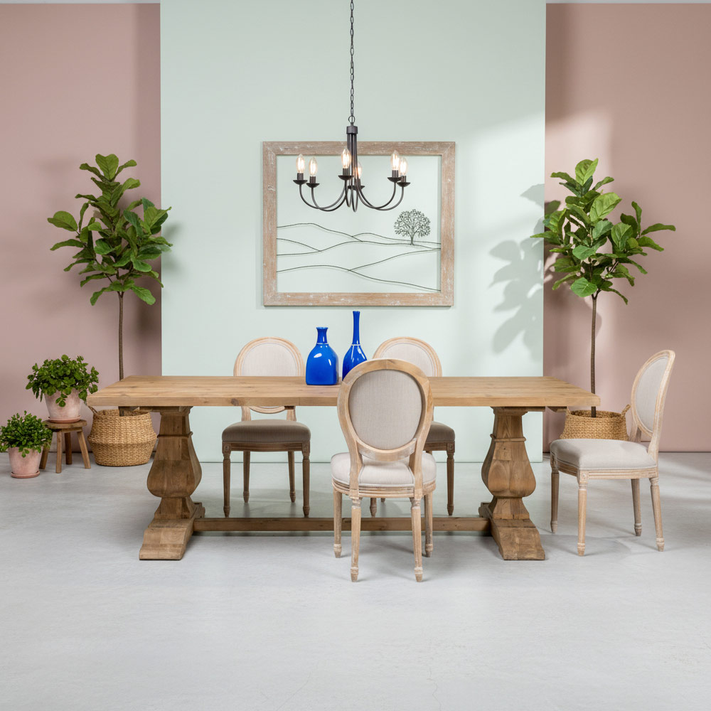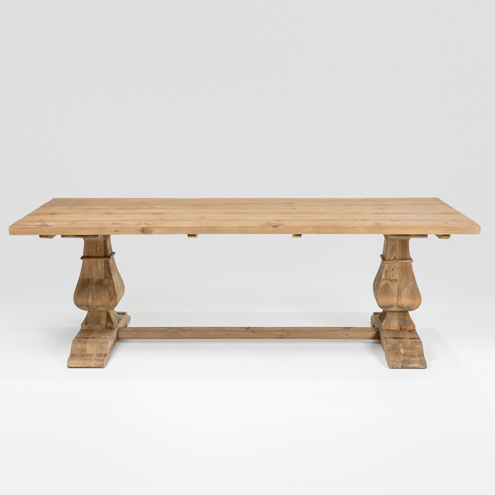 Esta mesa de pinho envelhecido naturalmente possui um charme autêntico e atemporal, ideal para valorizar espaços amplos como salas de jantar ou salas de estar. O acabamento envelhecido realça a textura da madeira, destacando os veios, nós e imperfeições que tornam cada mesa única.