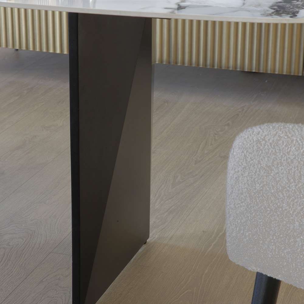 Linhas limpas, materiais de excelência e um toque de elegância contemporânea: esta mesa de jantar em metal e cerâmica é a escolha ideal para quem procura um móvel que combine funcionalidade e design sofisticado .