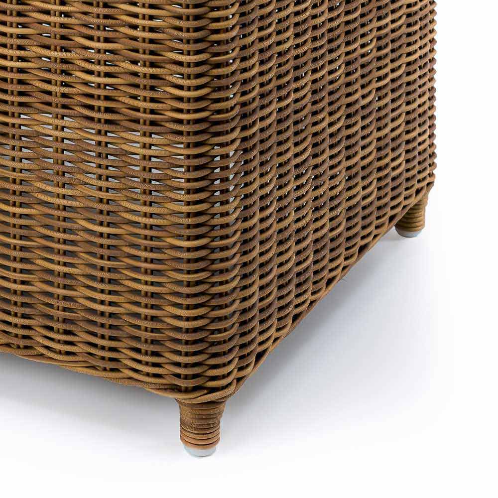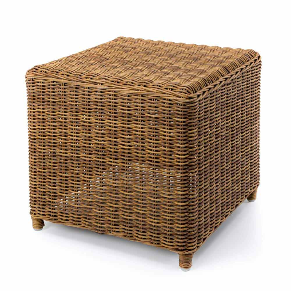 Mesa lateral quadrada em rattan sintético de tecido fino, design luxuoso.