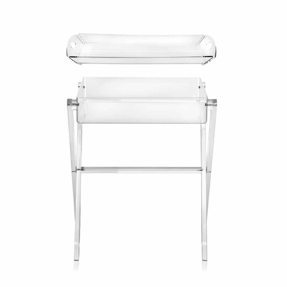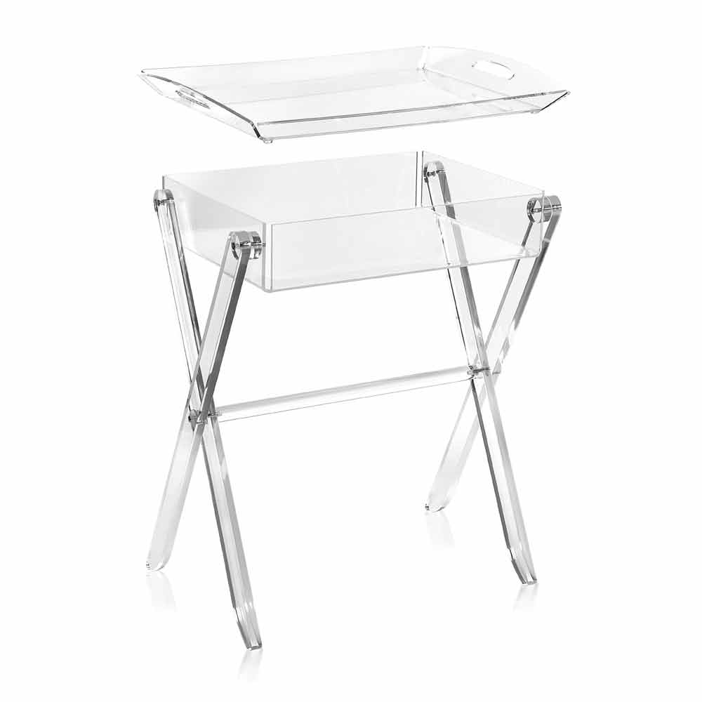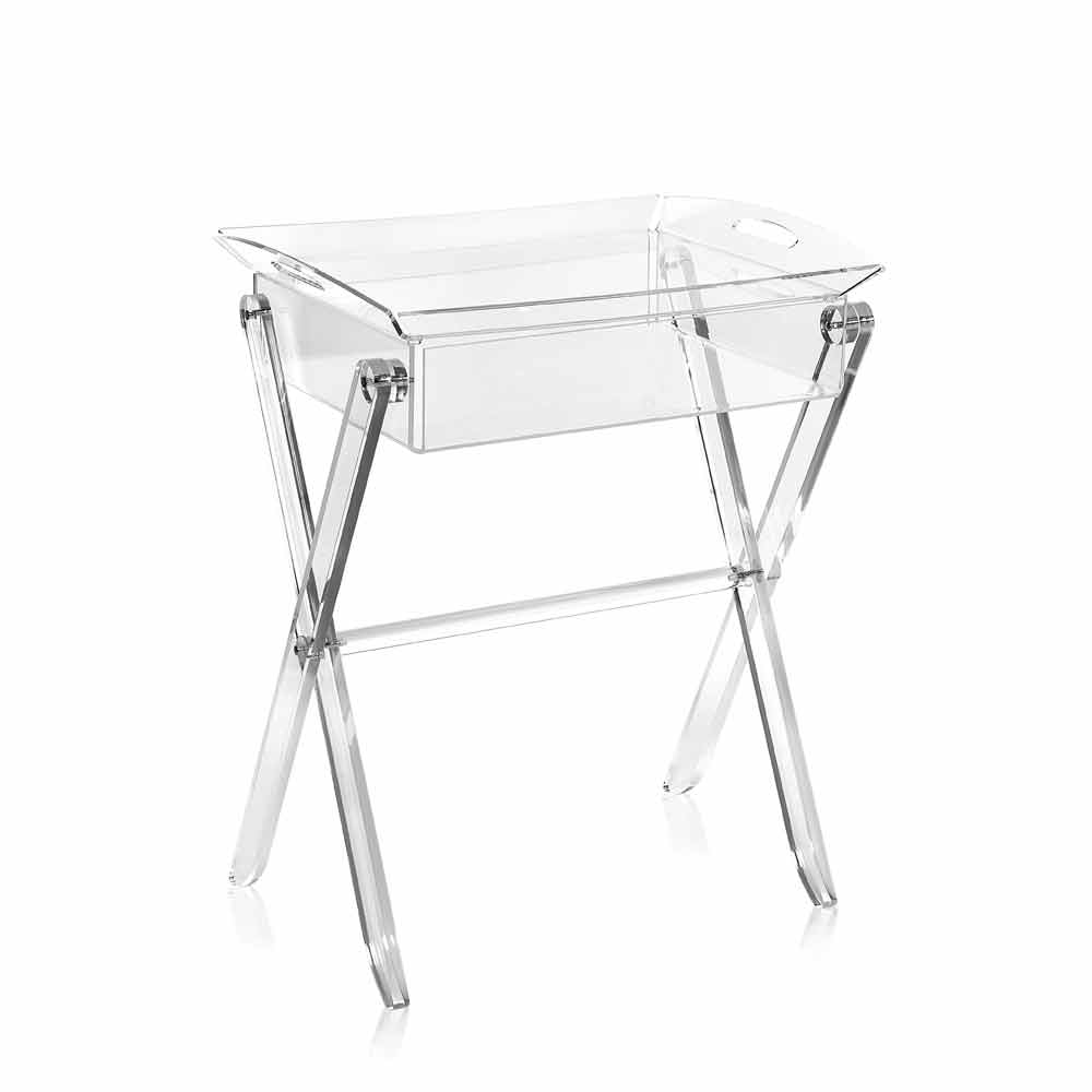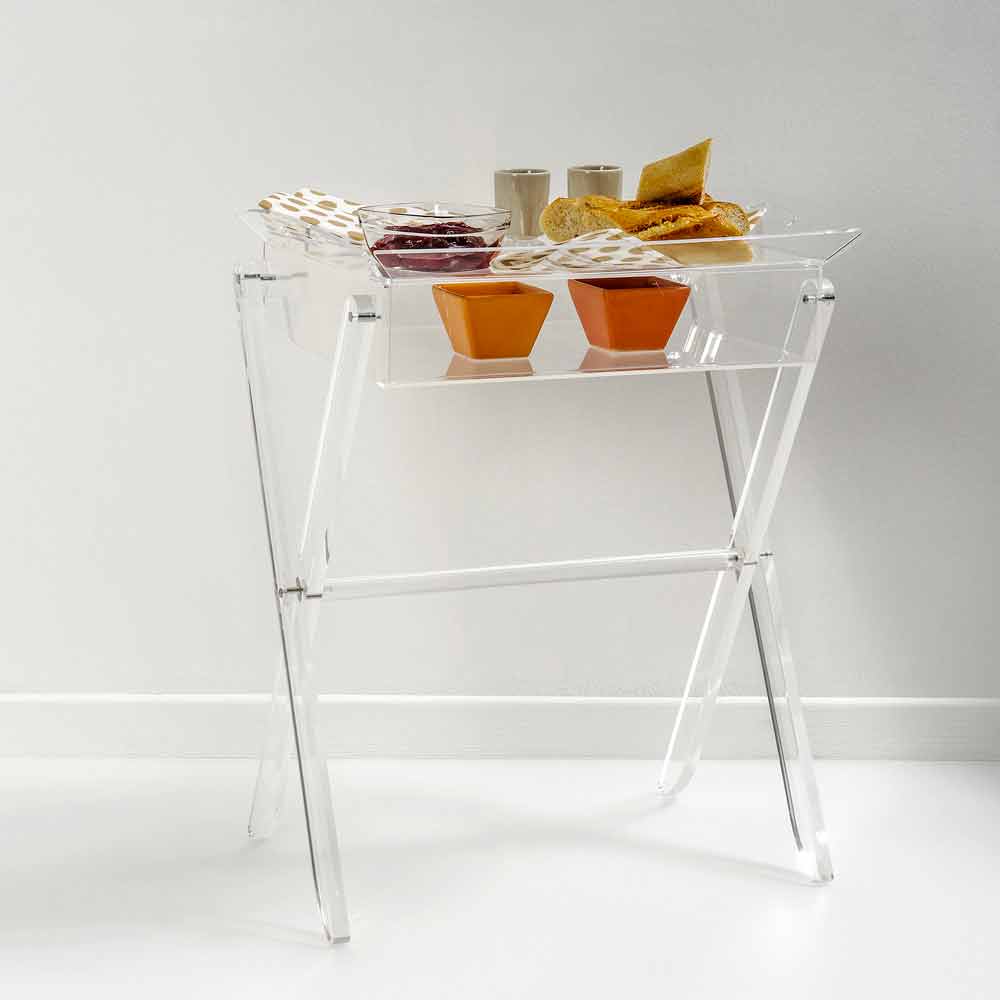 Mesa lateral design moderno feita de plexiglass transparente Olivia O carrinho / mesa lateral Olivia é feito de 100% PMMA de polímeros virgens. A prateleira inferior pode ser usada para pratos, lanches ou jornais, enquanto a prateleira superior é uma bandeja útil para servir café da manhã, café ou chá. As propriedades do plexiglass (isolamento térmico à prova de choque, indeformável, imutável) fazem deste item uma peça de mobiliário muito versátil. Sua luminosidade e brilho permanecem constantes e inalterados ao longo do tempo. O plexiglass de PMMA de polímeros virgens utilizados é não-tóxico, hipoalergênico, inodoro e antibacteriano. 100% reciclável, cumpre a norma UNI EN 71-3: 200. Projetado , desenvolvido e fabricadona Itália com materiaisitalianos .