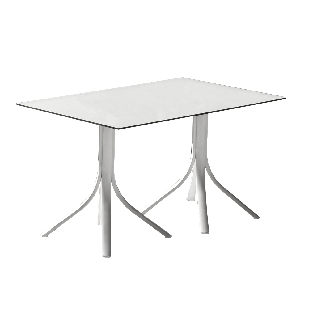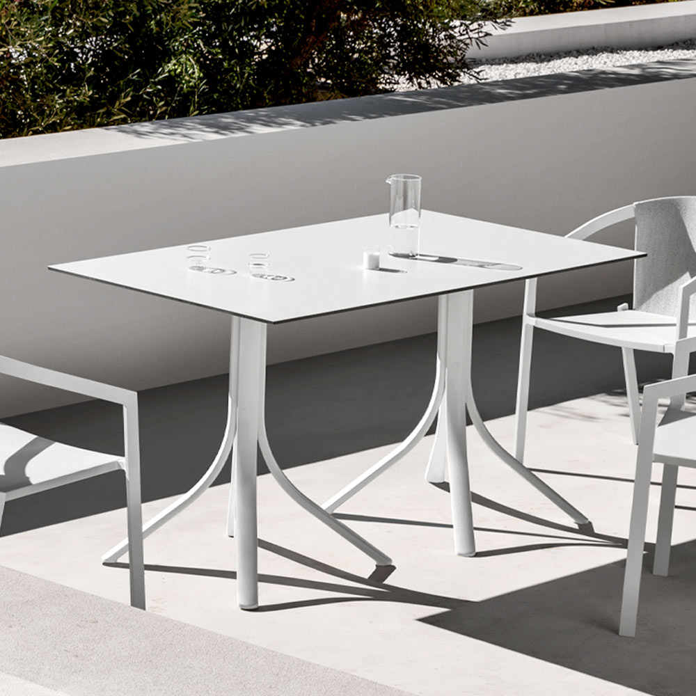 Mesa de exterior com desenho retangular em alumínio e tampo em HPL em 2 acabamentos, artigo de alta qualidade made in Italy.