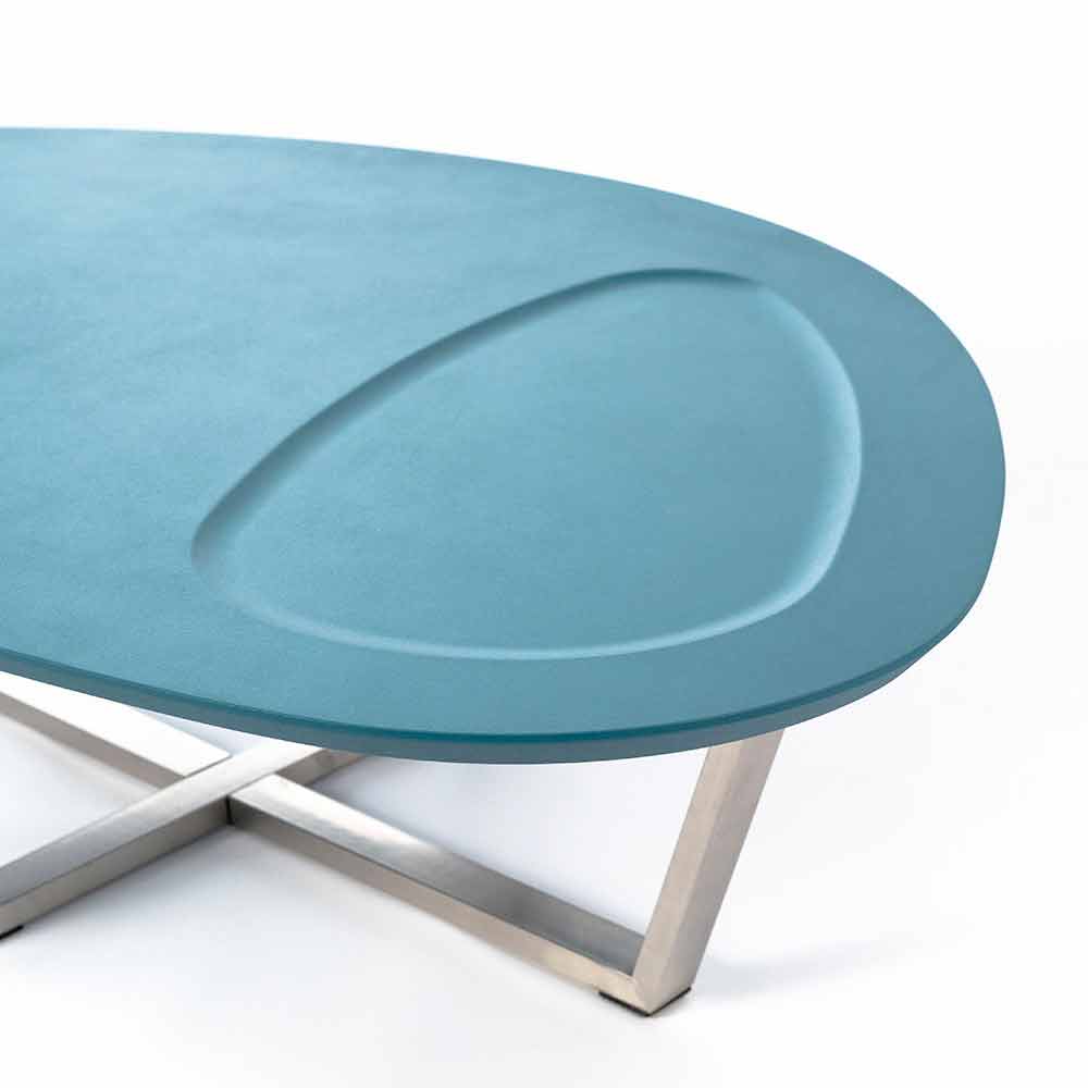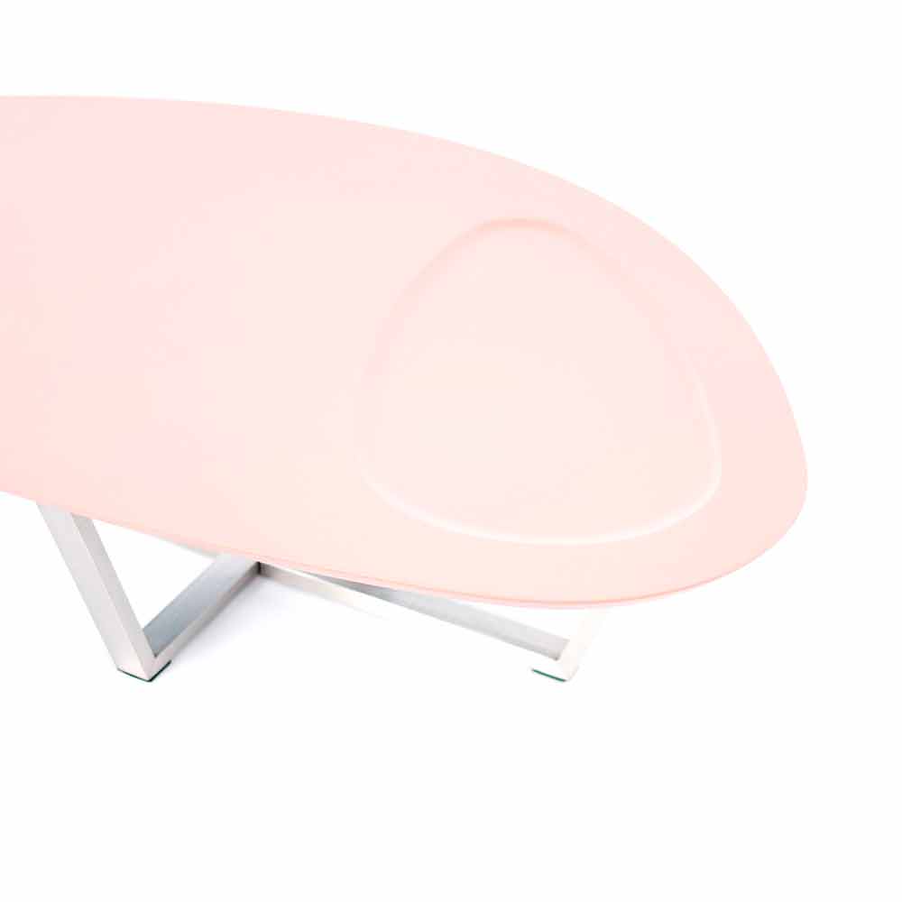 Donatella é uma mesa de centro moldada feita com tampo de MDF e base de metal cromado.