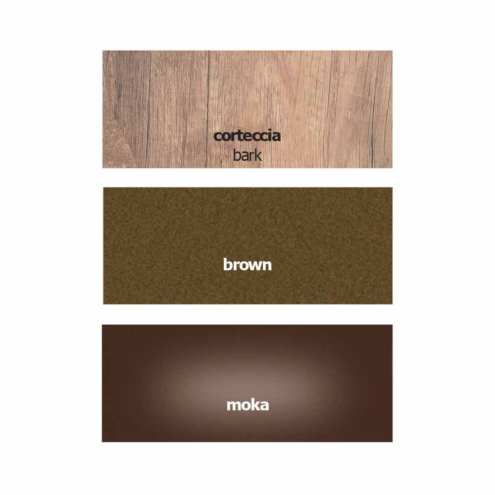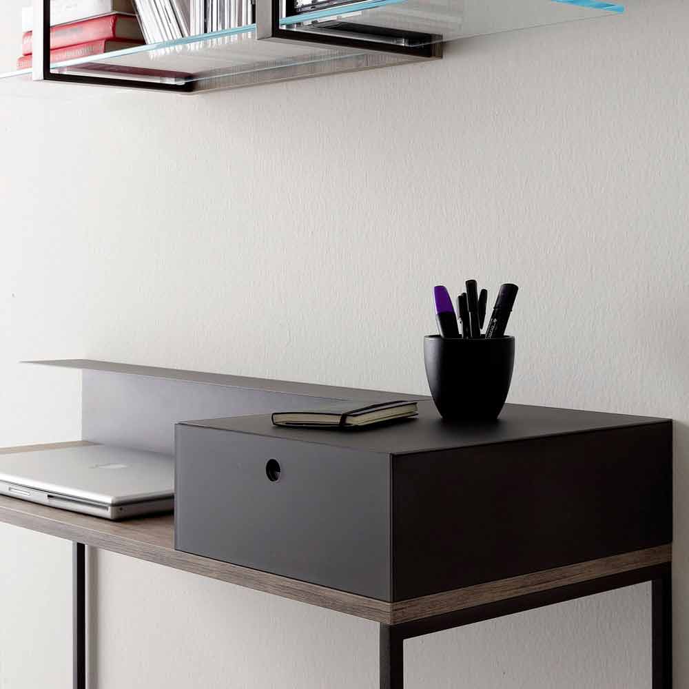 Mesa moderna e elegante made in Italy com tampo em melamina com acabamento casca e estrutura em metal pintado de marrom . Completa-se ainda com uma prática gaveta forrada a cristal e posicionada acima do tampo e um tampo em metal a condizer com a base. Esses dois elementos enriquecem o design do produto, dando um forte componente funcional. A refinada estética e majestade da madeira se combinam com o toque moderno do metal pintado e a elegância atemporal do cristal para criar um móvel único e exclusivo, ideal para combinar a funcionalidade de uma escrivaninha e o design de um elemento decorativo capaz de renovar o estilo do ambiente.