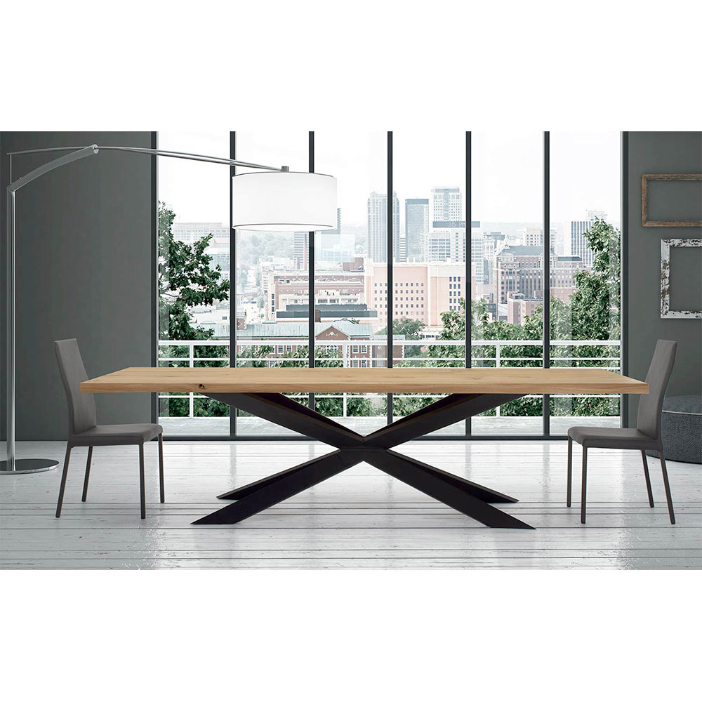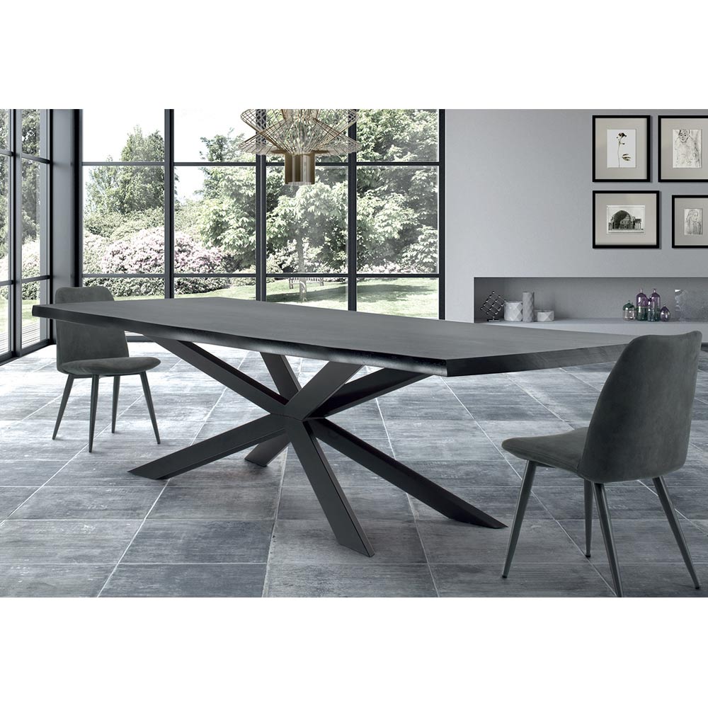 Mesa de jantar moderna em madeira folheada e base em aço preto feita à mão na Itália.
