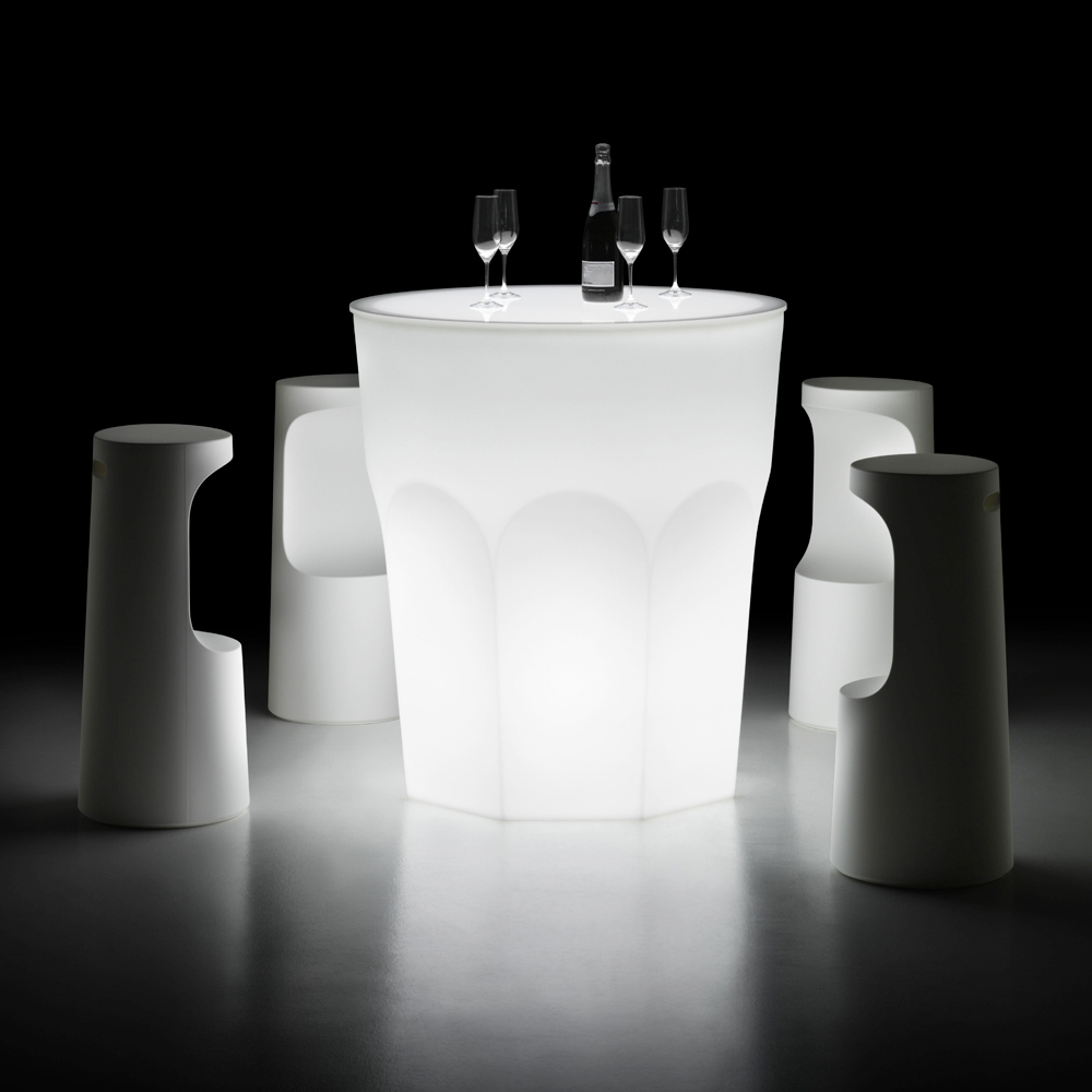Mesa de luz de exterior design em polietileno com luz LED Made in Italy.