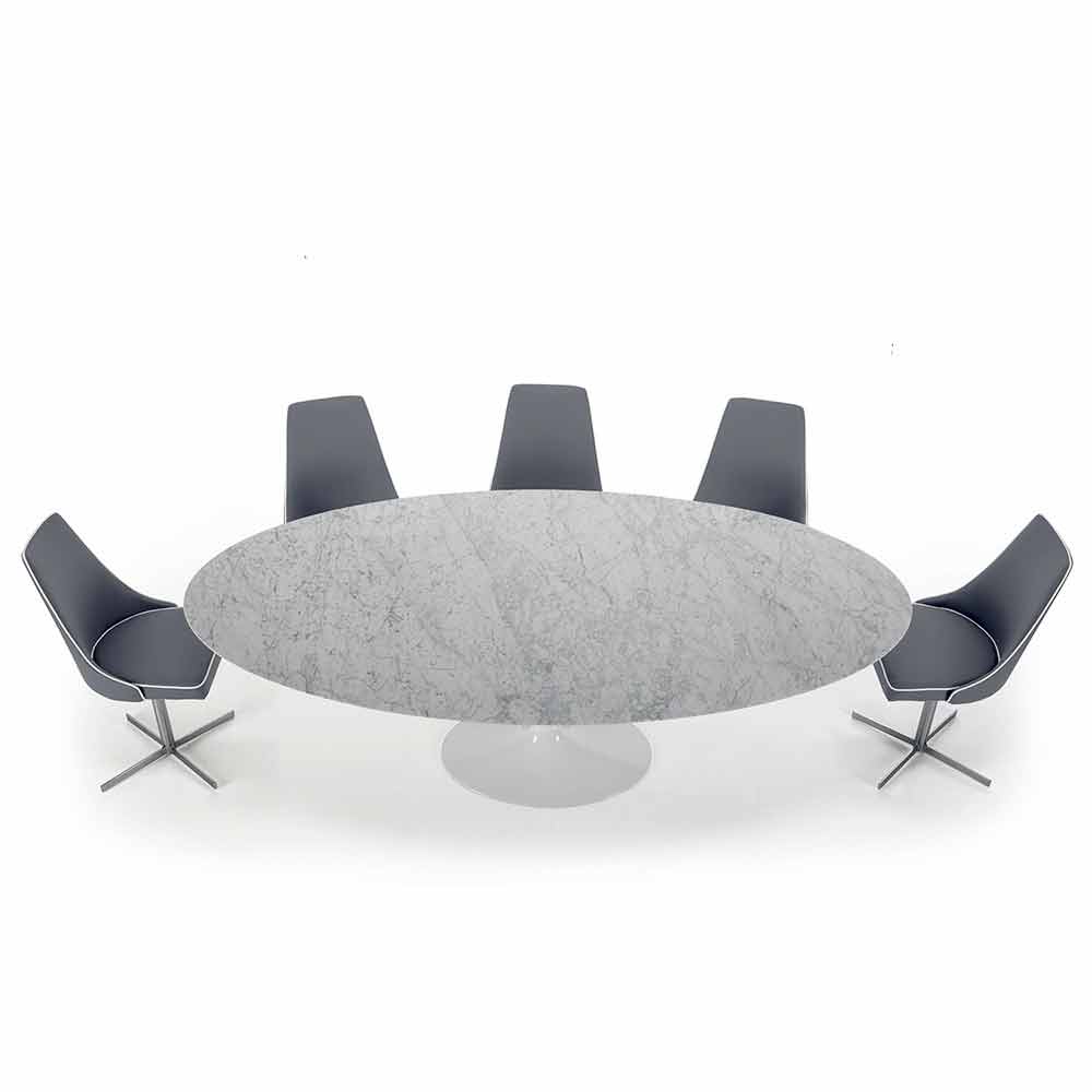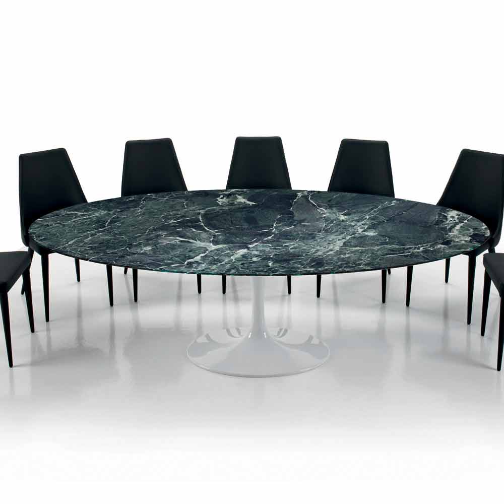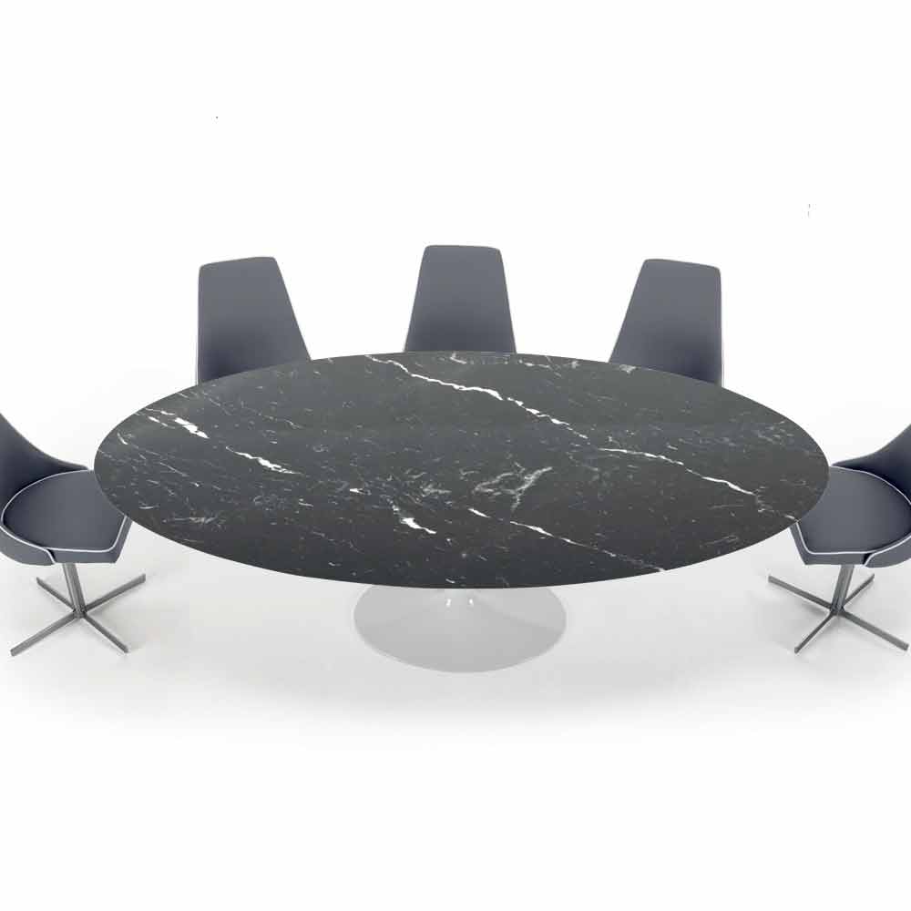 Mesa oval para sala com tampo em mármore Carrara ou Nero Marquinia, feita à mão na Itália.
