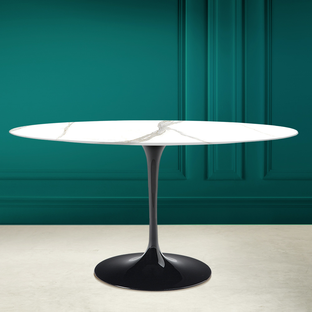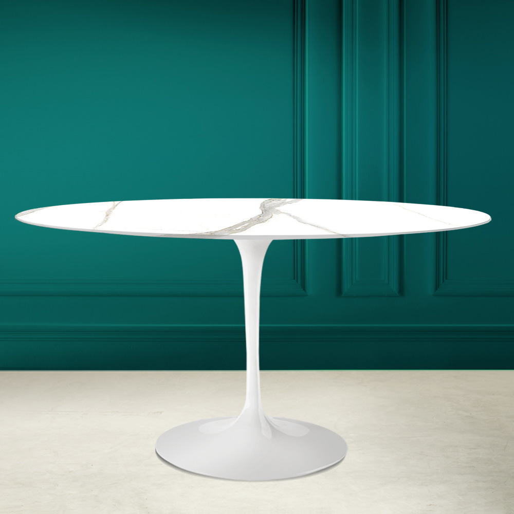 Mesa de jantar com tampo oval em cerâmica calacatta michelangelo Made in Italy