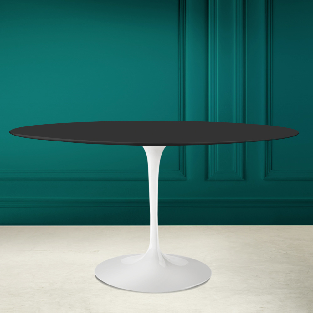 alumínio polido. Esta mesa é o elemento perfeito para dar um toque original a qualquer sala de estar e cozinha graças à forma oval e à cerâmica macia Nero. A