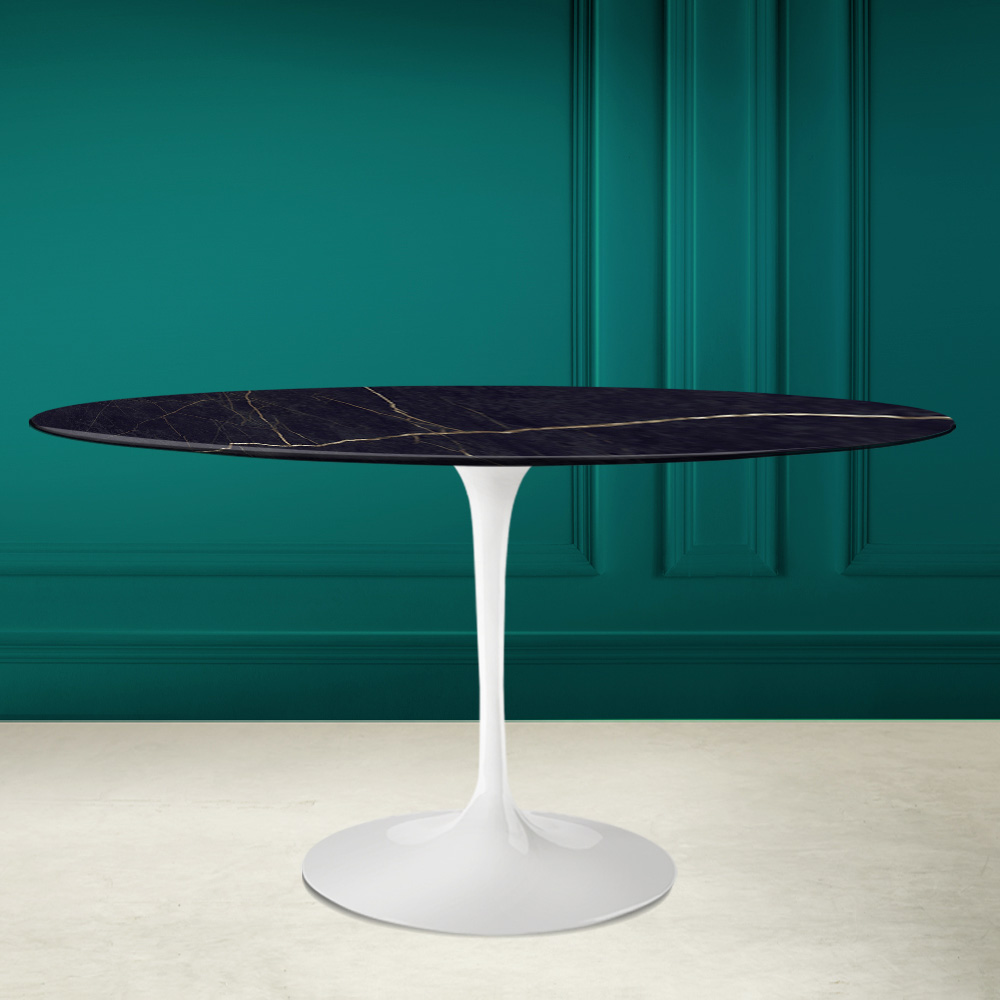 base de alumínio polido. Esta mesa é o elemento perfeito para dar um toque original a qualquer sala de estar e cozinha graças à forma oval e à cerâmica noir laurent. A