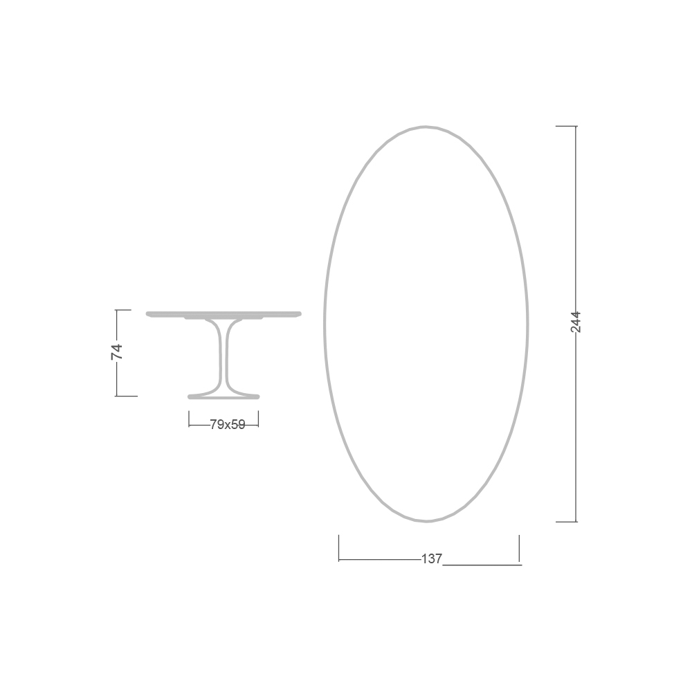 - Tampo da mesa: 244 x 137 / Base oval: 79 x 59 cm x A 73 cm