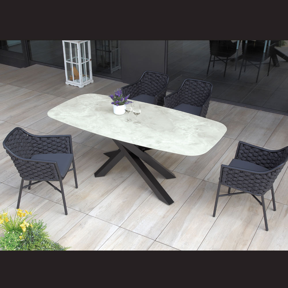Esta mesa de jardim combina design elegante e resistência superior , perfeita para mobiliar qualquer ambiente externo com estilo. Sua estrutura em alumínio pintado , sólida e com corte moderno, é combinada com um tampo refinado em HPL estratificado , conhecido por sua extrema durabilidade e resistência a agentes atmosféricos , arranhões e calor.