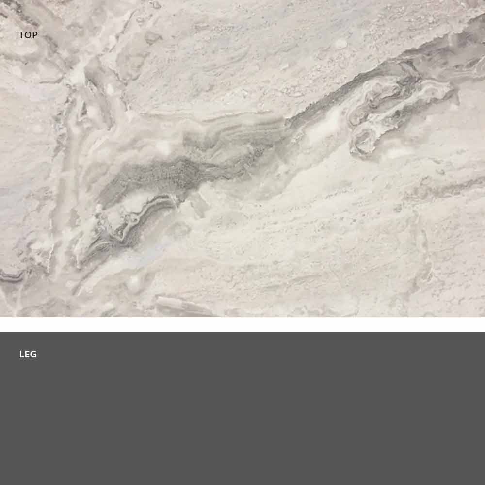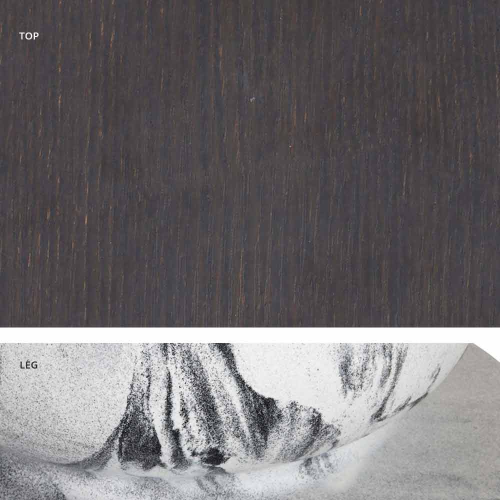 - base em preto azeviche e tampo em madeira / ardósia / cimento / calacatta;
