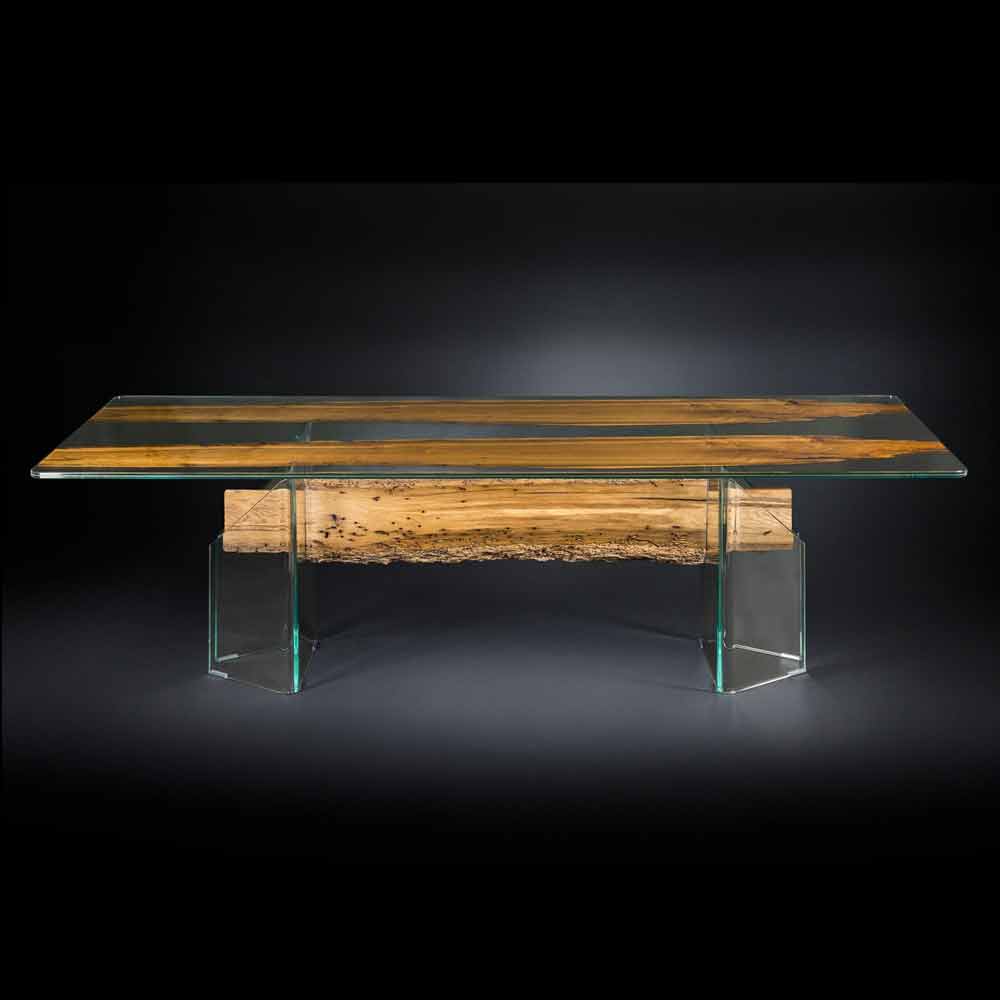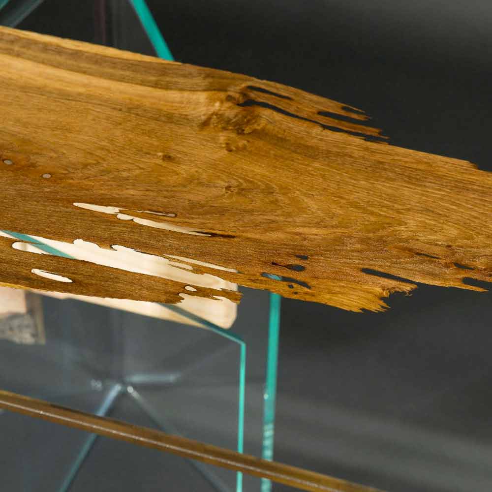 Mesa retangular Venezia, feita de madeira de briccola de Veneza e vidro, design moderno.