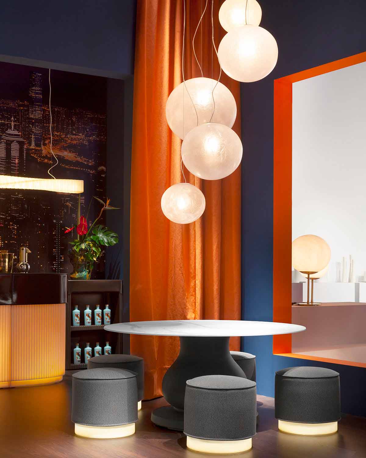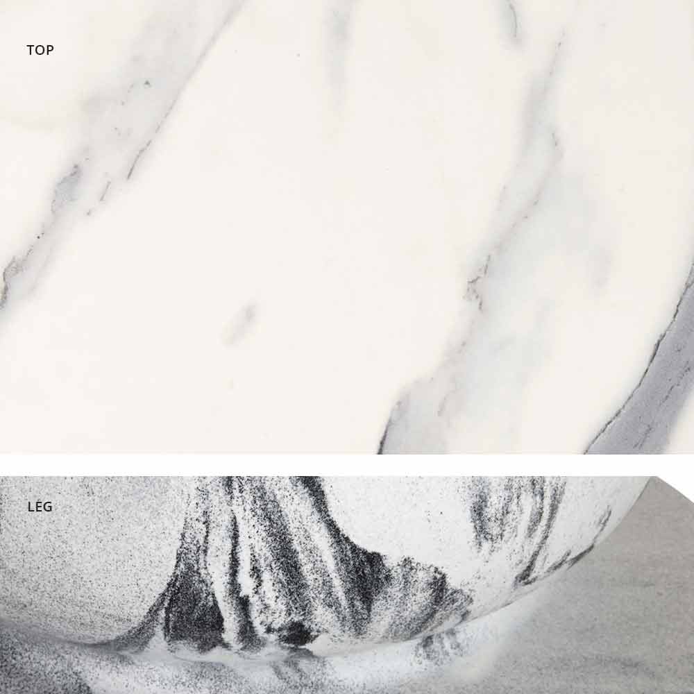 clássico para a sala de jantar , nasceu graças à colaboração com a produção interna e à pesquisa contínua sobre o processamento do material. Assim nascem diferentes composições, que se inspiram nos acabamentos de mármore mais procurados. A meio caminho entre o artesanato e a indústria, o profundo conhecimento do departamento de produção no processamento de materiais plásticos permite criar um acabamento único em cada peça, com todas as imperfeições que tornam o trabalho de um artesão maravilhoso.
