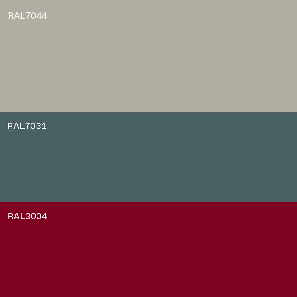 - pernas em cinza RAL7031 + cruz bordô RAL3004 + tampo em cinza pomba RAL7044