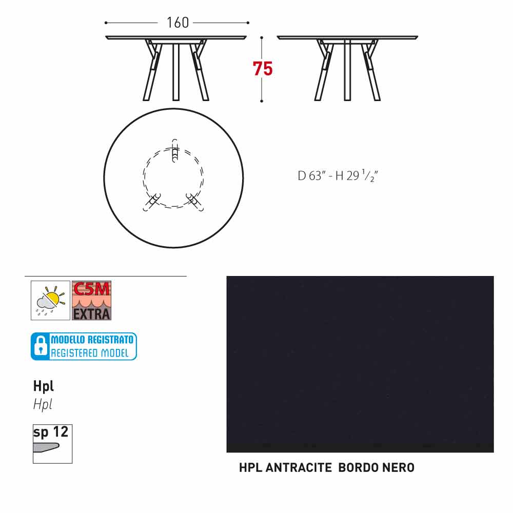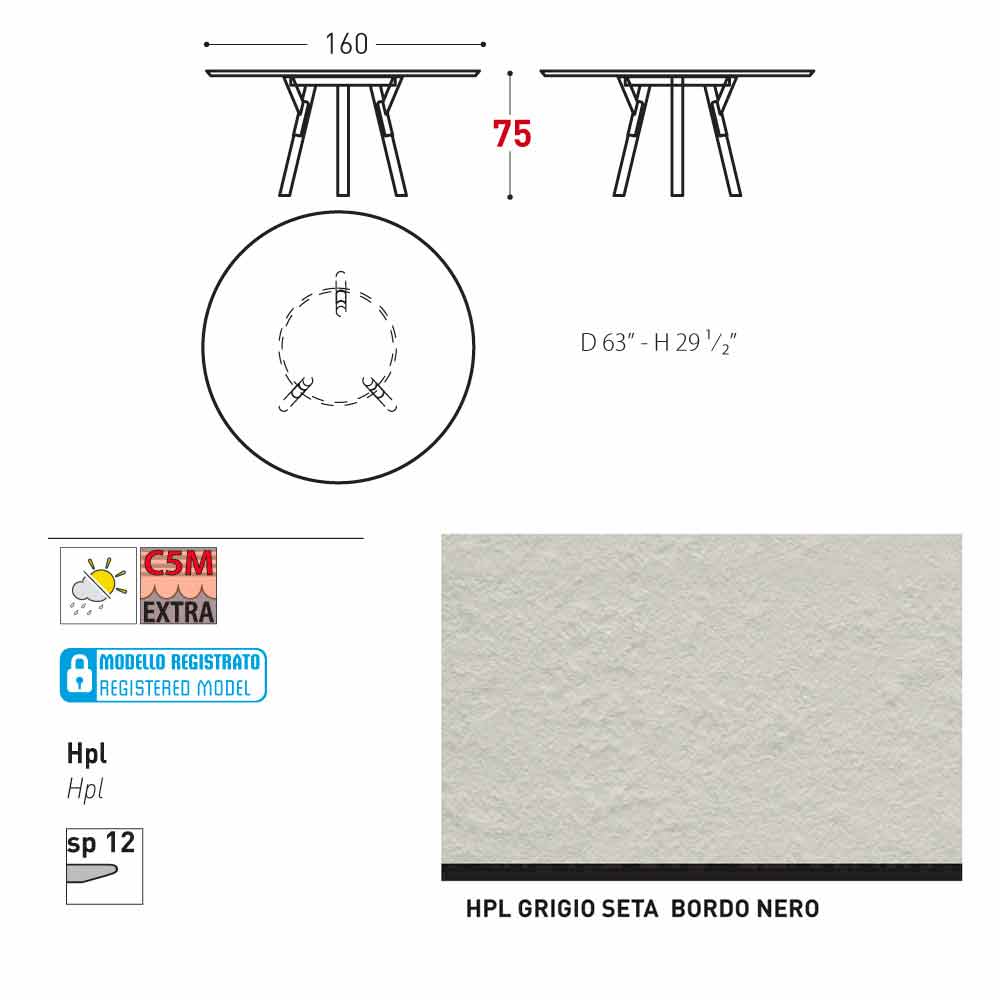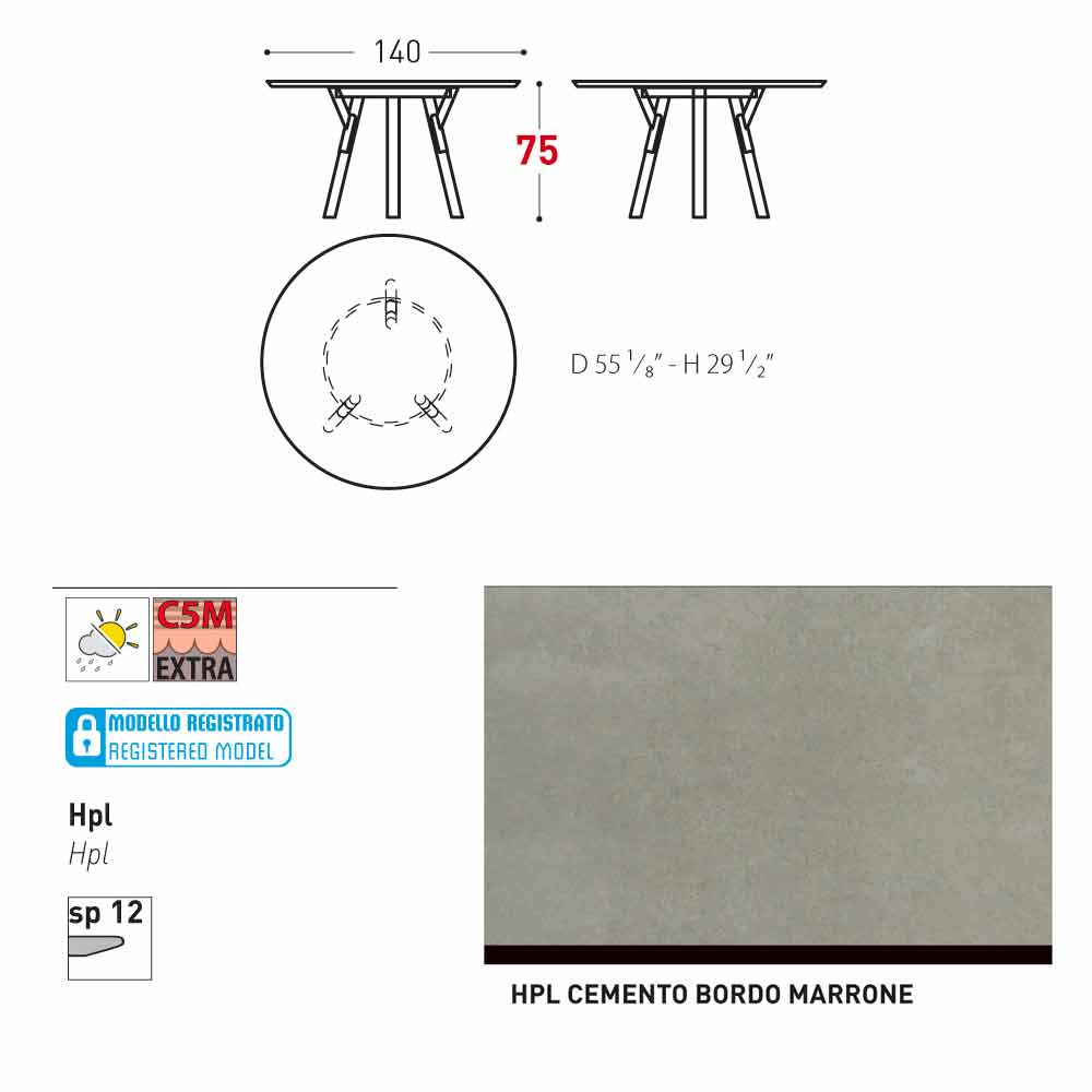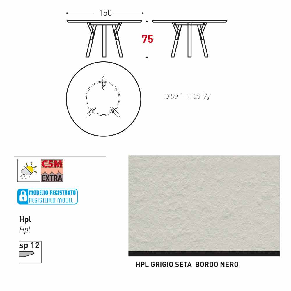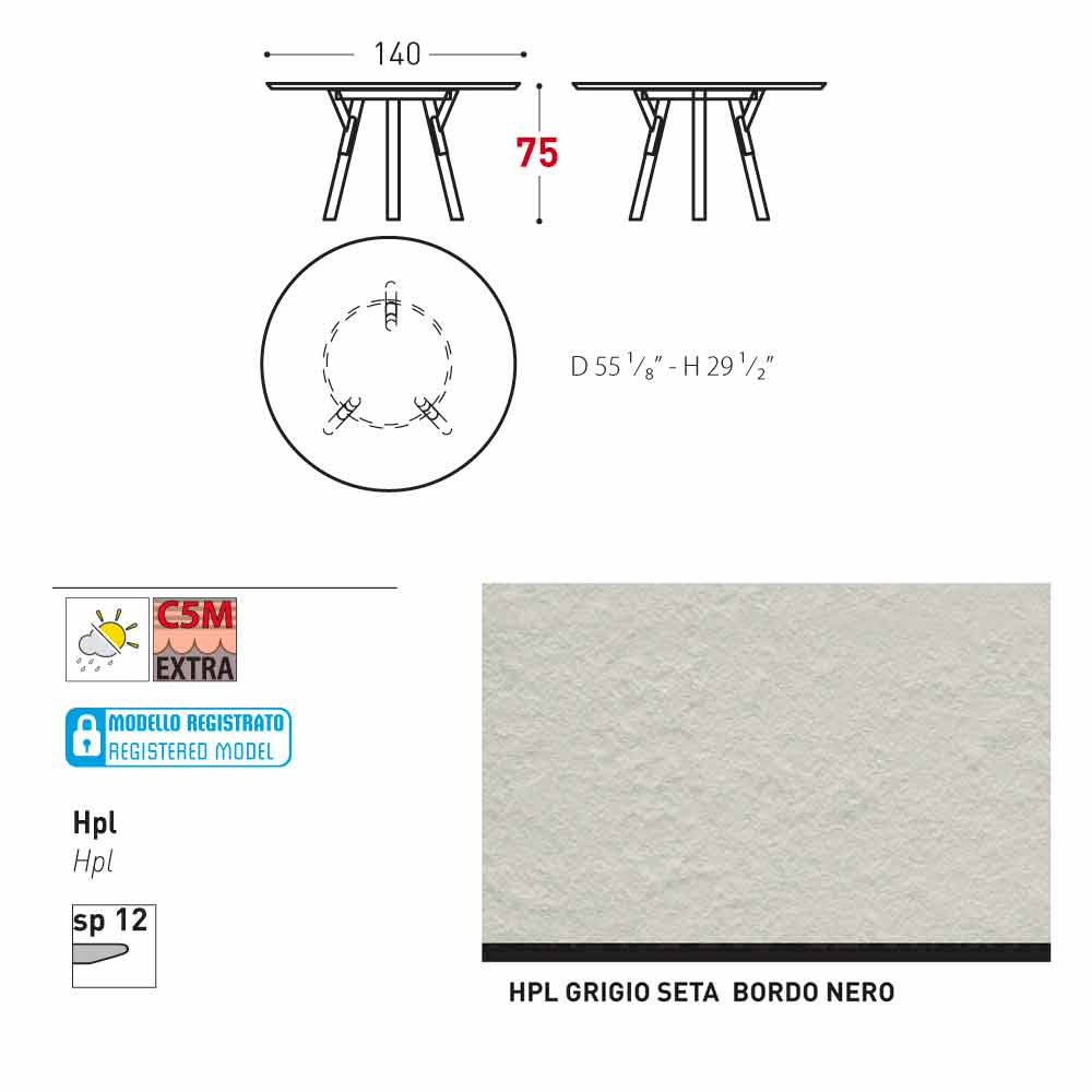 Recursos técnicos HPL : Laminados de alta pressão. Eles são feitos de várias camadas de papel (70%) impregnadas com resinas termofixas (30%) e compactadas por cerca de 45-50 minutos através da ação combinada de calor (a cerca de 150 graus) e alta pressão (superior a 7 MPa / Megapascal por metro quadrado.) O resultado é um produto estável, não reativo, não poroso e de alta densidade. Possui características físicas e químicas de alta resistência mecânica (excursão de temperatura controlada + 80 / -40 graus, por menos de 30 segundos em temperaturas extremas). Resiste à exposição à luz e variações de temperatura, mesmo em ambientes marinhos.