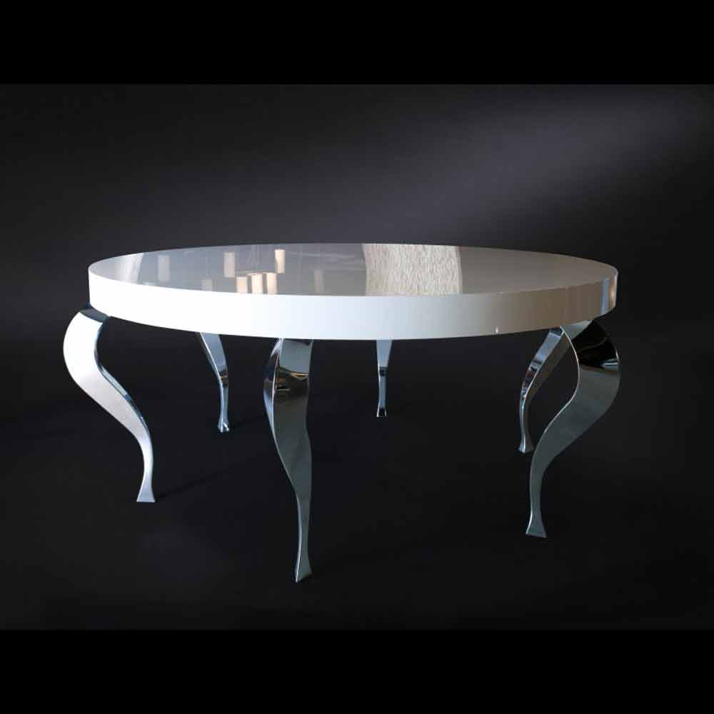 Mesa moderna com tampo de mesa redonda em MDF (100 mm) e estrutura em aço cromado. O MDF é também conhecido como painel de fibras de média densidade. Luigi ficará perfeito em qualquer sala; traga elegância e classe em sua casa!