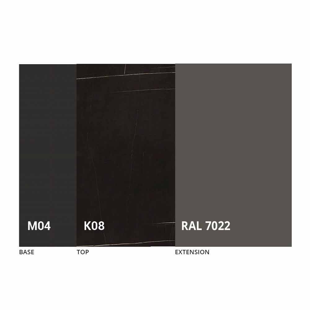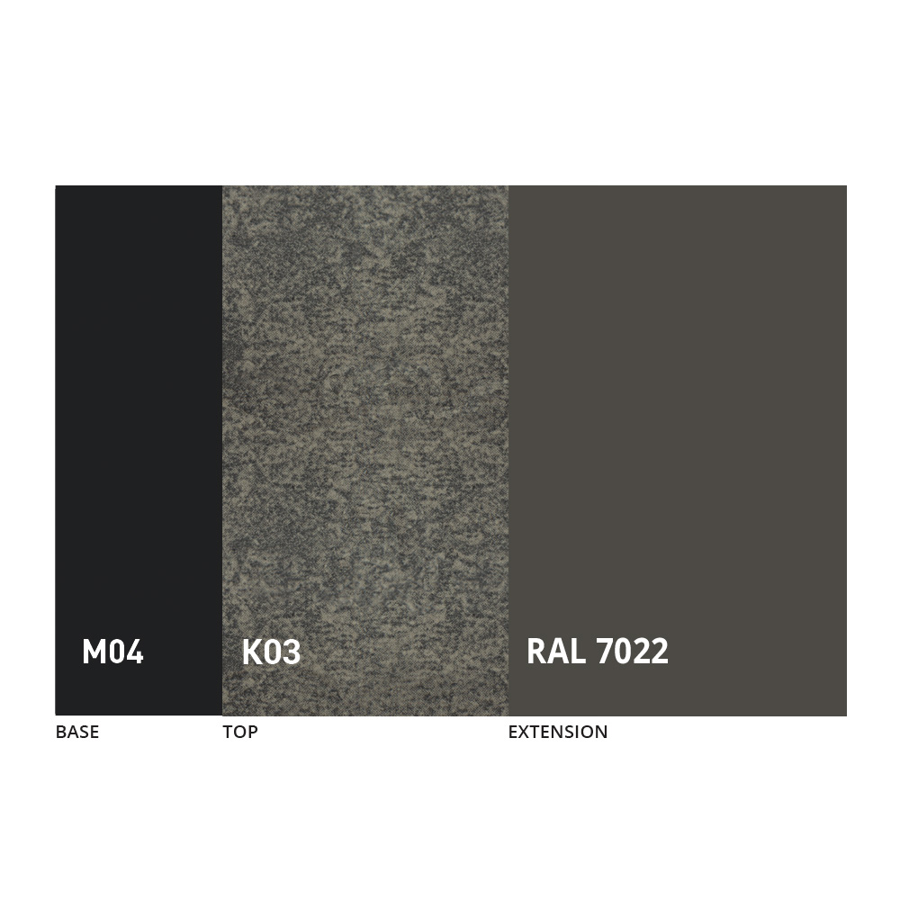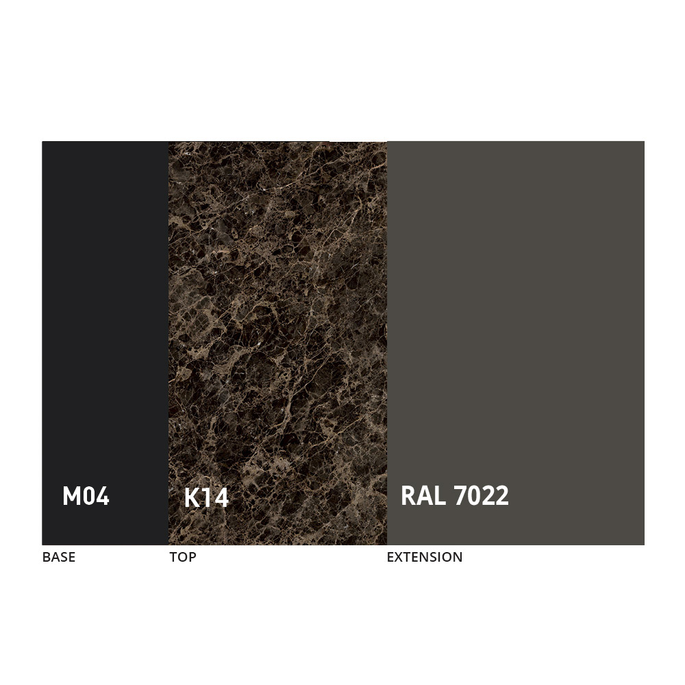 O tampo e a base da mesa podem ser personalizados com diferentes acabamentos de amostra. Para informações, entre em contato conosco através do formulário "