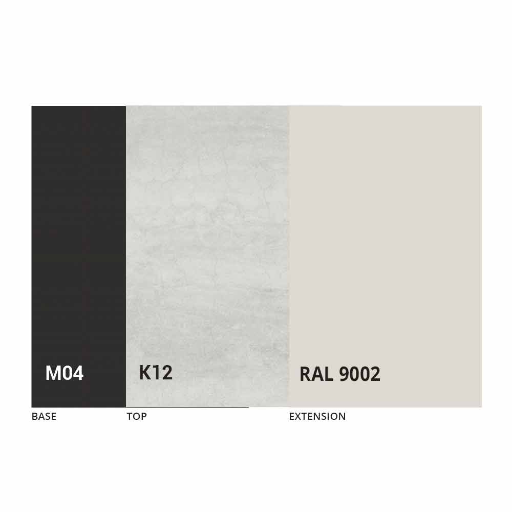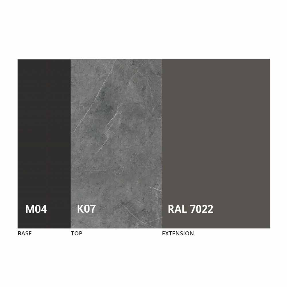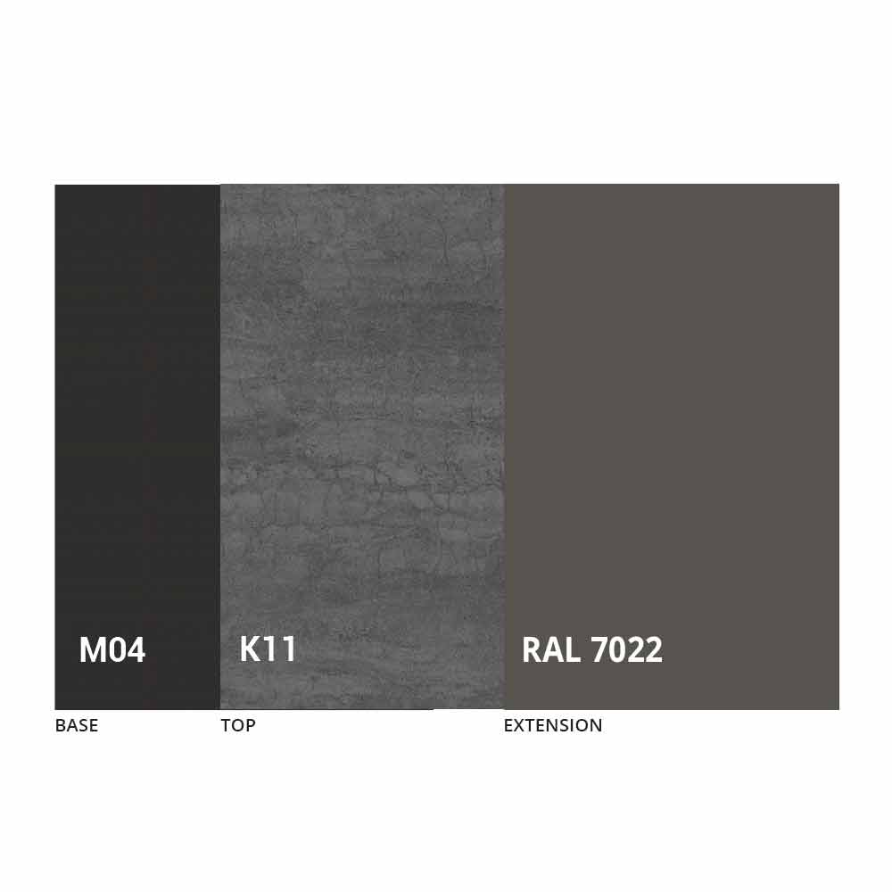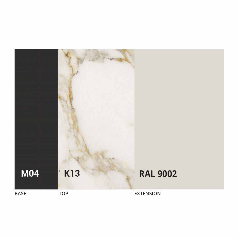 O tampo e a base da mesa podem ser personalizados com diferentes acabamentos de amostra. Para informações, entre em contato conosco através do formulário "