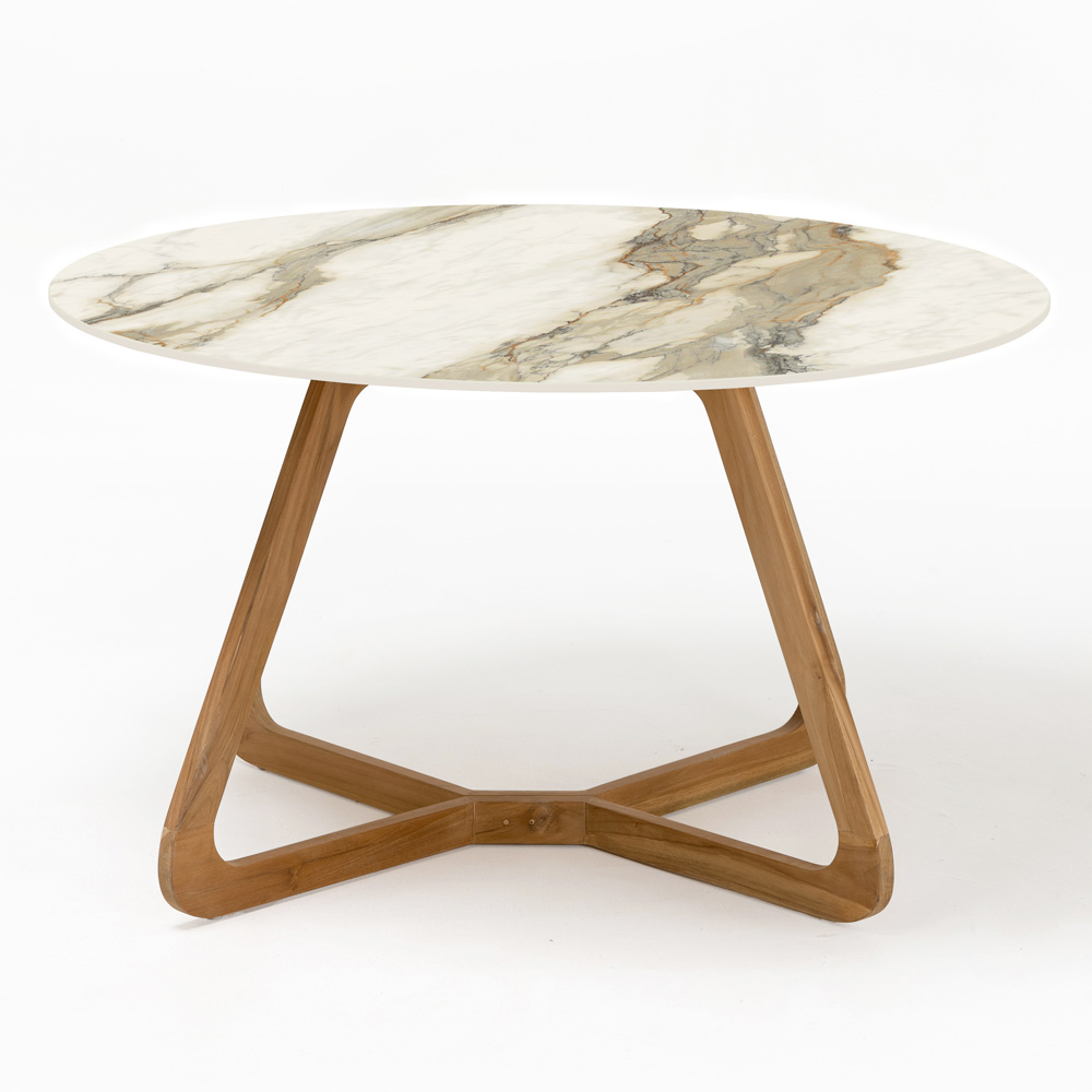 Mesa de jardim redonda de madeira e cerâmica, fabricada na Itália