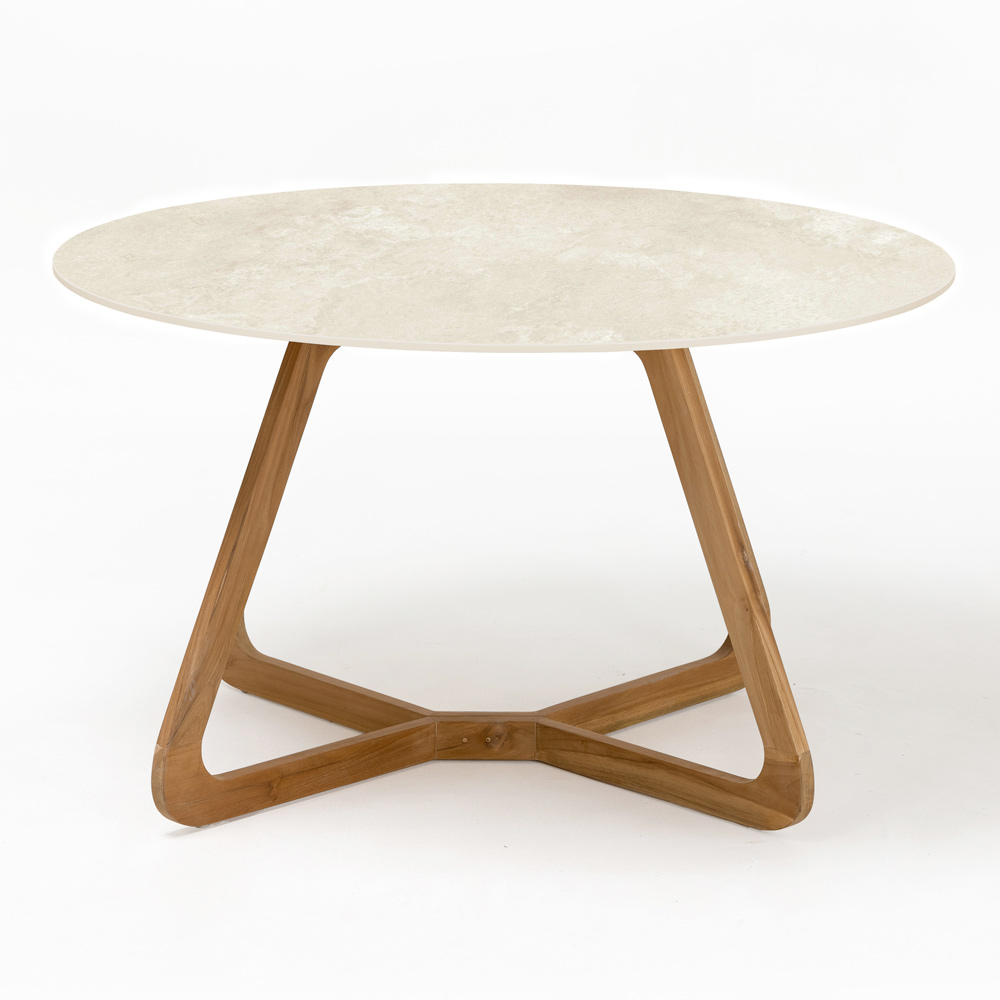 Mesa de jardim redonda de madeira e cerâmica, fabricada na Itália