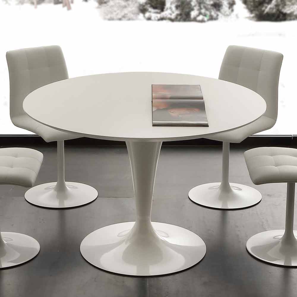 Muito prático e versátil, Topeka é feito com uma base de aço pintada de branco e um tampo de 30 mm de espessura H77 cm e borda alargada, disponível em diferentes tamanhos de diâmetro, em dois materiais diferentes e três tons de branco diferentes.