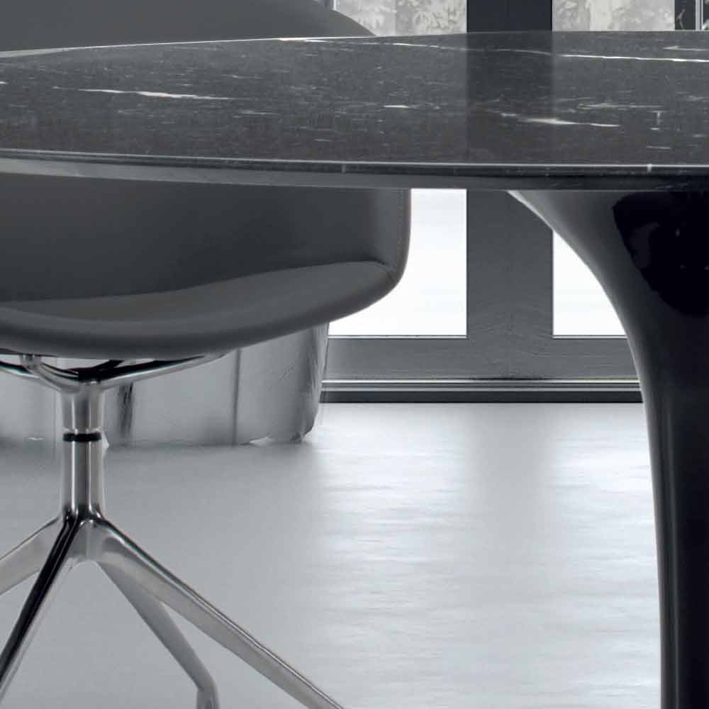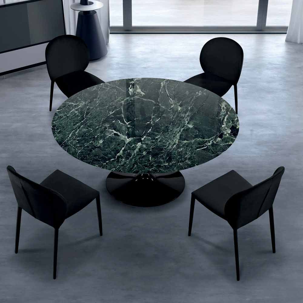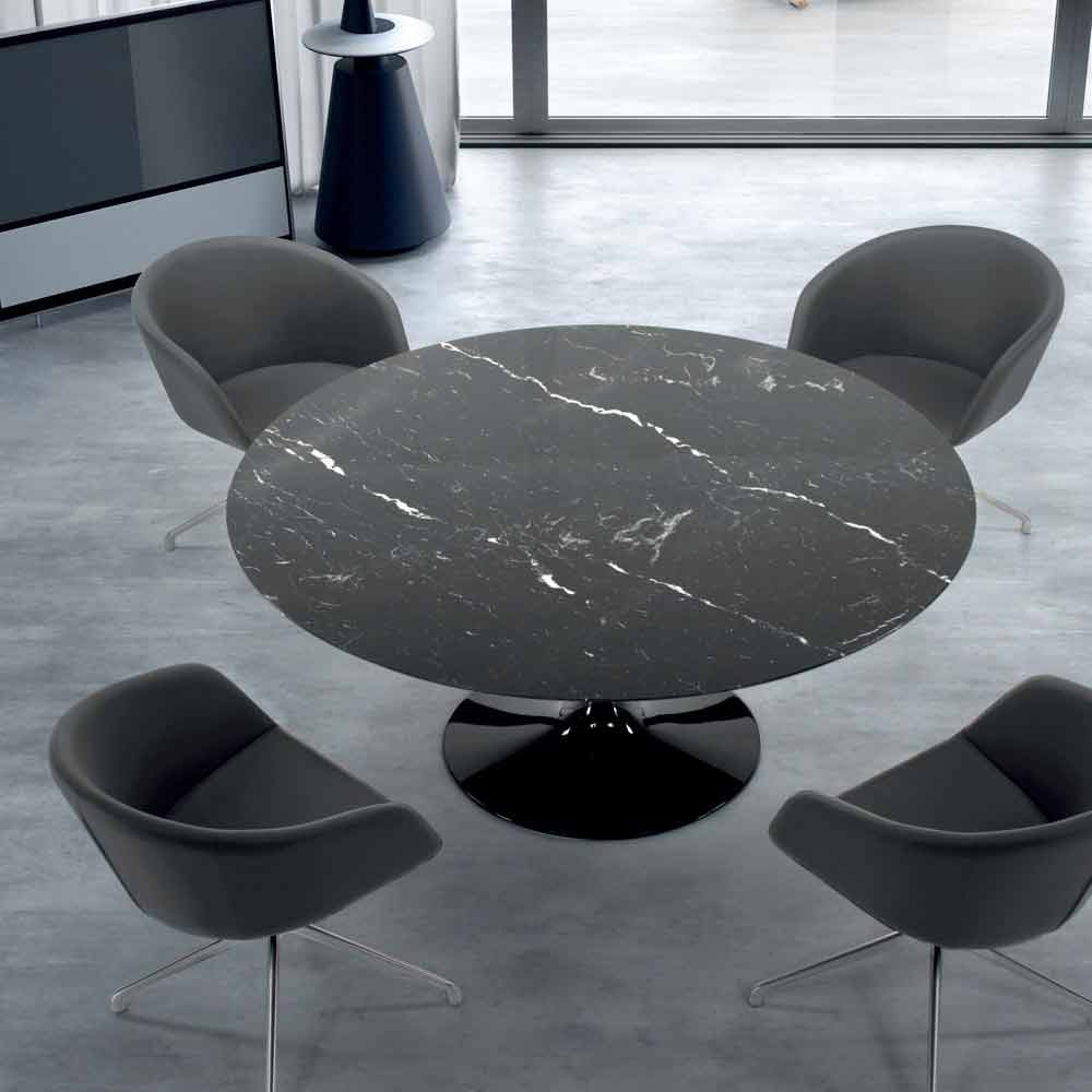 Mesa redonda moderna com tampo em mármore Carrara ou Nero Marquinia feita à mão na Itália.
