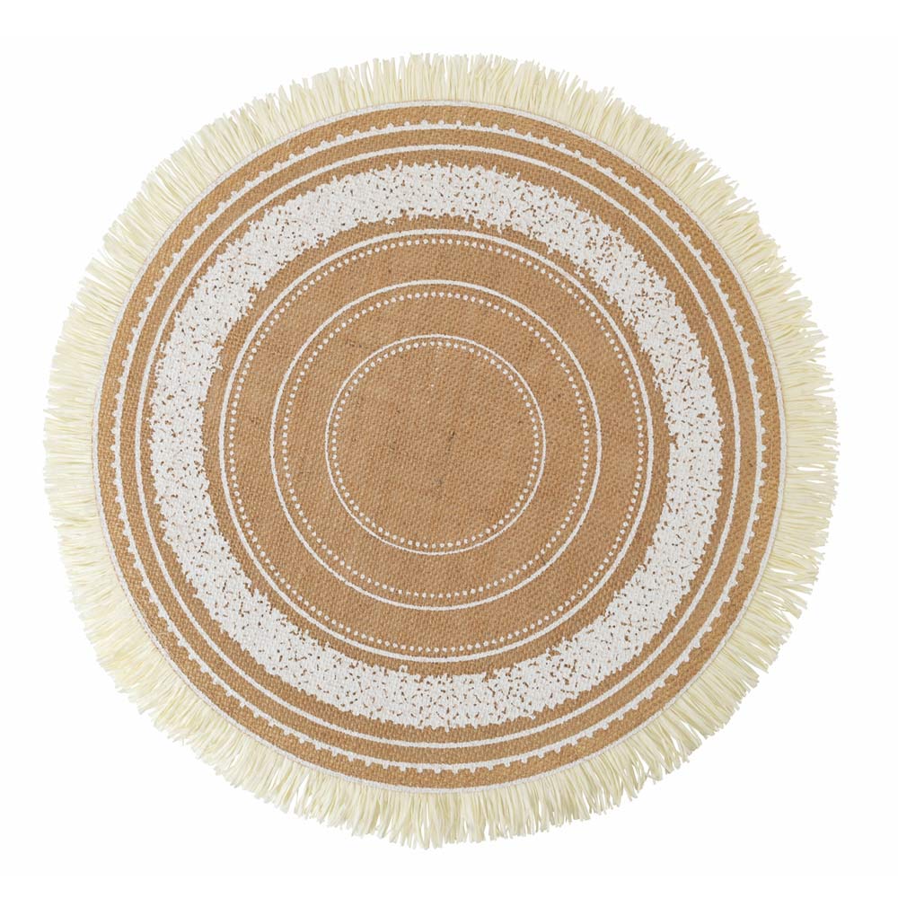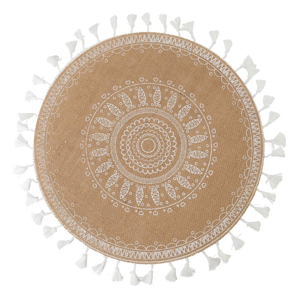 Conjunto de jogos americanos de juta redondo decorado com 3 sortidos brancos de 12 peças.