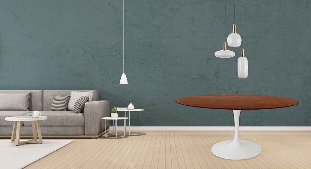 Mesa de jantar com tampo redondo em
