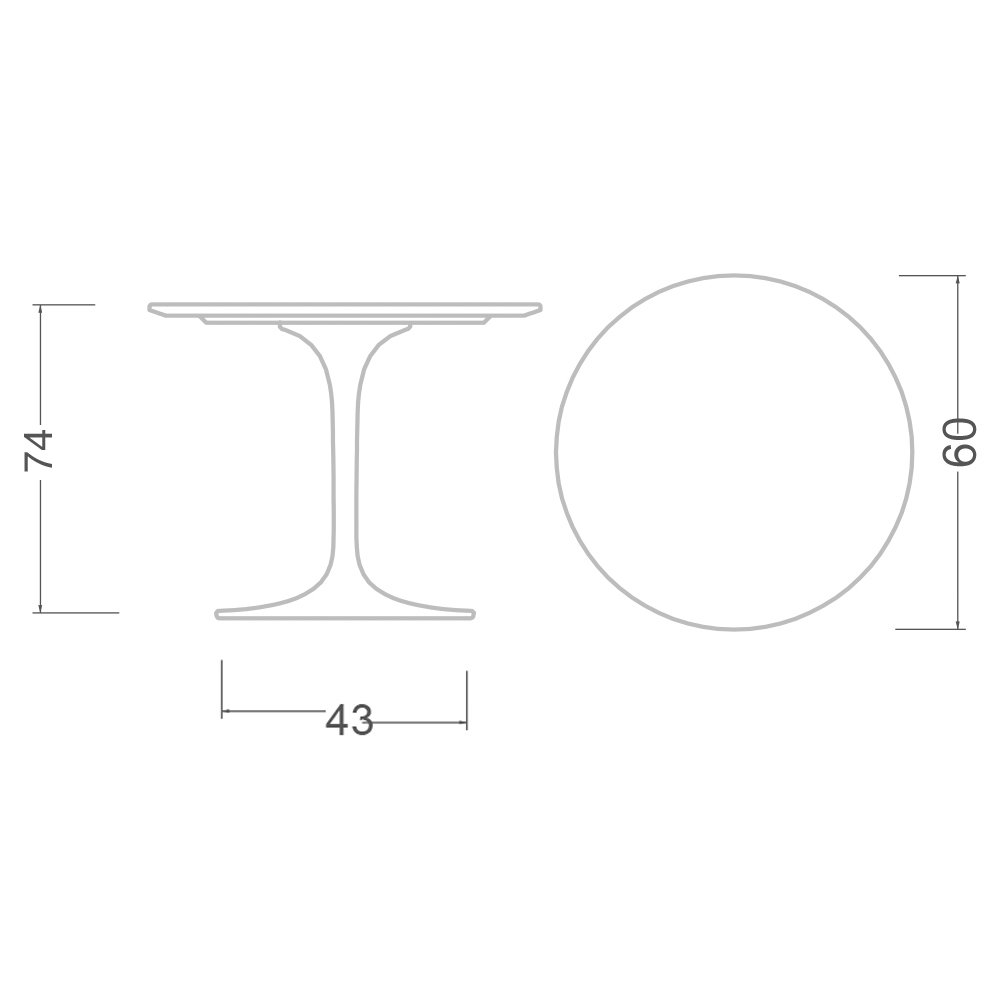 - Diâmetro do tampo da mesa 80 x altura 74 cm;