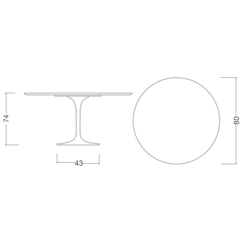- Diâmetro do tampo da mesa 80 x altura 74 cm;
