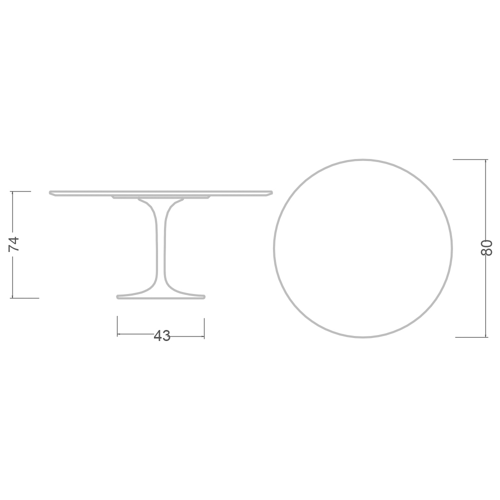 - Diâmetro do tampo da mesa 80 x altura 74 cm;