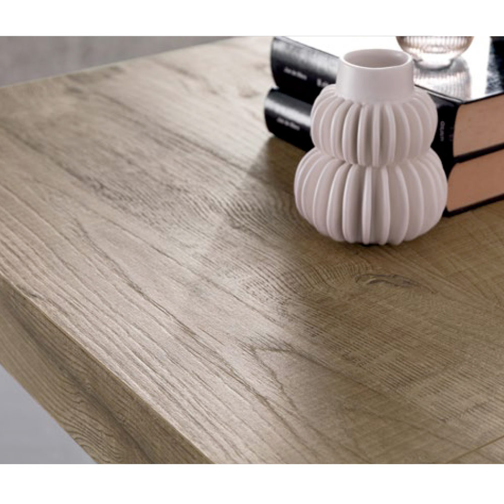 Esta mesa é um verdadeiro exemplo de design minimalista que não sacrifica a resistência nem a funcionalidade. Fabricada em laminado com acabamento em carvalho, que realça a textura e o aconchego do material, esta mesa destaca-se pela sua estrutura sólida e pela elegância das suas linhas puras e limpas. O formato quadrado e o tampo amplo criam um ambiente acolhedor e convidativo, perfeito para mobiliar a sua sala de jantar com estilo.