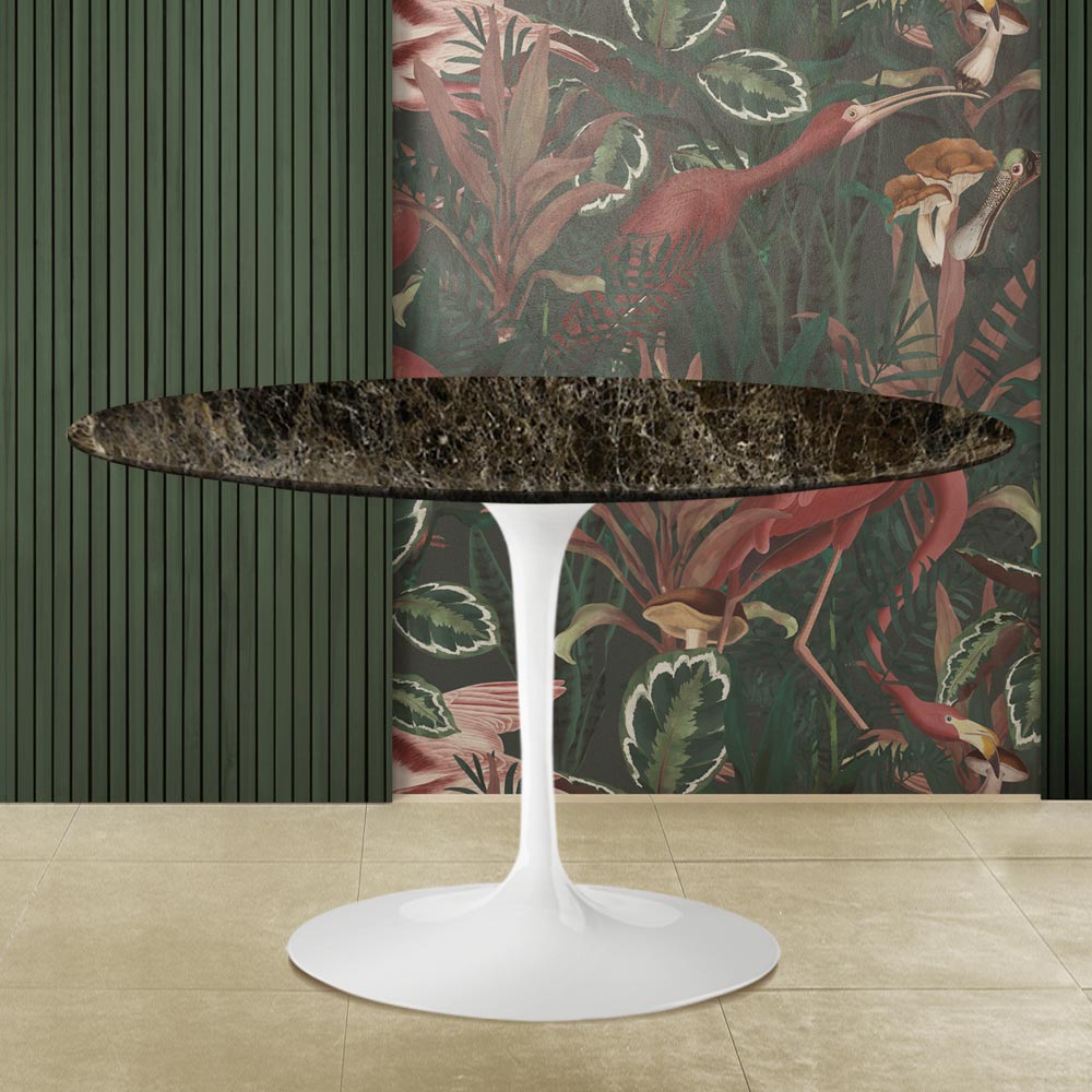 Mesa de jantar redonda em mármore imperador escuro e alumínio polido Made in Italy