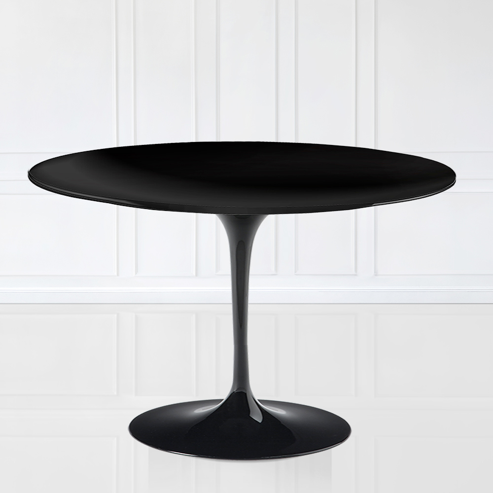Mesa de jantar redonda com tampo em laminado líquido preto e base em alumínio polido preto Made in Italy
